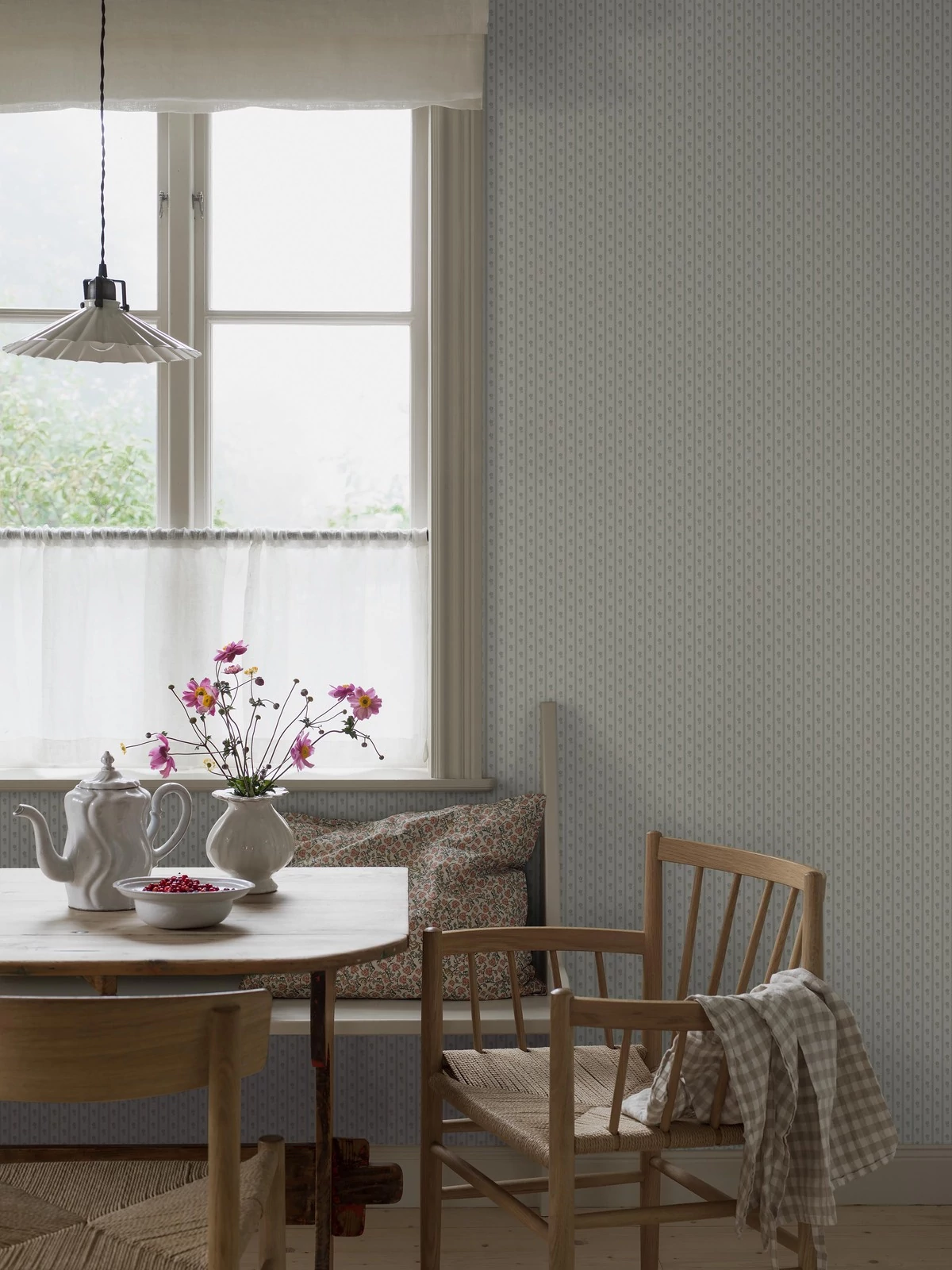 A Lilla Lyckan tapéta poros világoszöld árnyalatban nyugtató és friss hangulatot teremt, apró, kézzel rajzolt virágok ismétlődnek krémszínű háttéren. A minta a francia 18-19. századi textíliák eleganciájából merít, finoman kidolgozott, visszafogott bájjal. Ez a Lilla Lyckan tapéta kellemes zöld tónusával harmonikus és nyugodt légkört varázsol a helyiségbe.