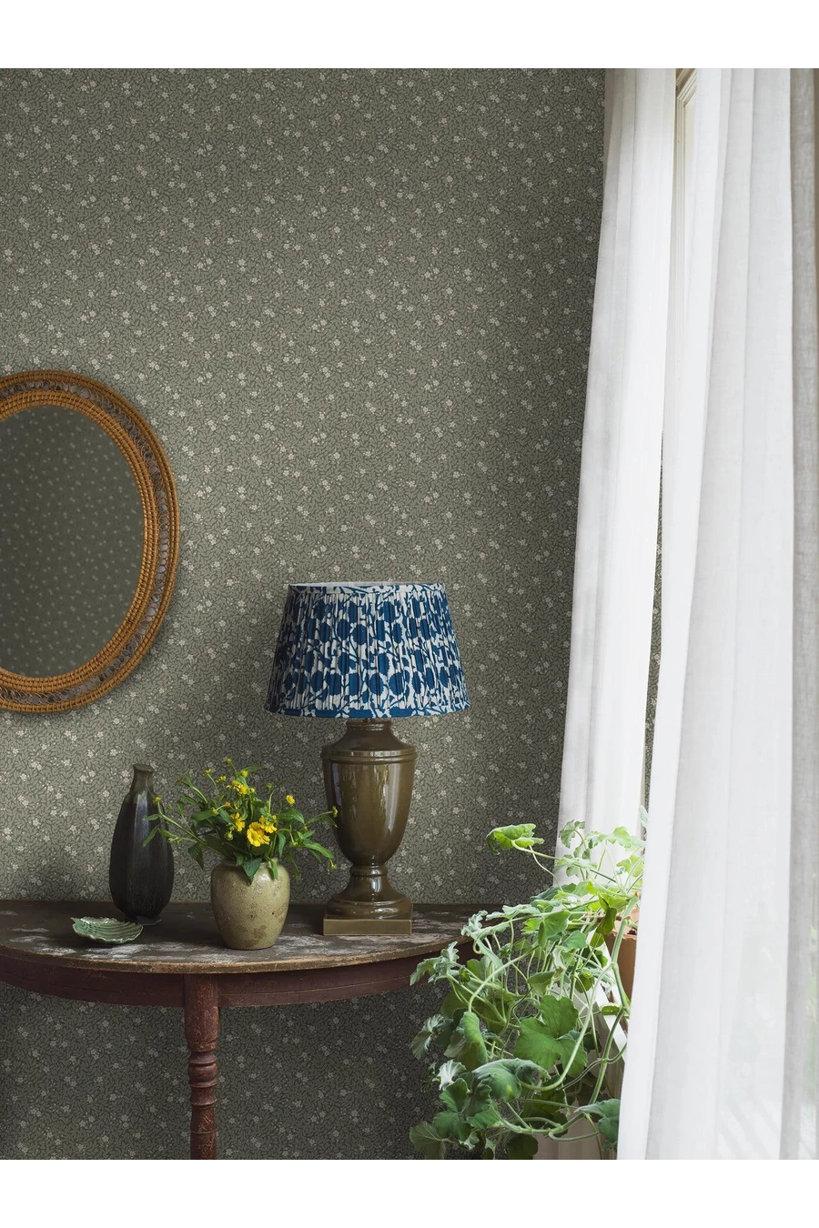 Merülj el a természet mélységeiben a Myrten tapétánkkal, mely tónuson tónus sötét üvegezöld árnyalatokban, felületi nyomással készült. Ulrica Hurtig által tervezett sűrű, kézzel festett levél- és virágminta varázslatos és elegáns teret teremt. Ideális választás azoknak, akik egy csipetnyi botanikus kifinomultságot keresnek, tökéletes hálószobába, előszobába vagy nappaliba.