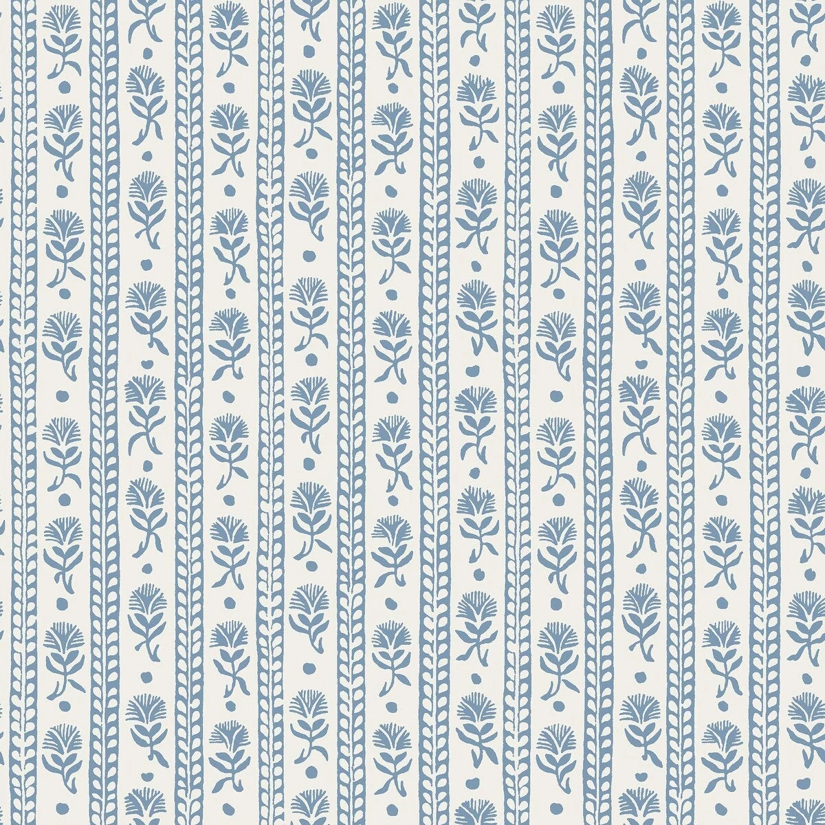 A porcelánkék szegfűk finoman nyúlnak végig a tiszta fehér háttéren ebben a Nejlikerand tapétában. Az 18. századi díszítő stílusok ihlette elegáns csíkos mintázat nyugodt, légies hangulatot teremt, klasszikus, mégis vidám megjelenéssel. Engedd, hogy a Nejlikerand tapéta nyugodt szépsége csendes eleganciával és finom történelmi bájjal töltse meg otthonodat.