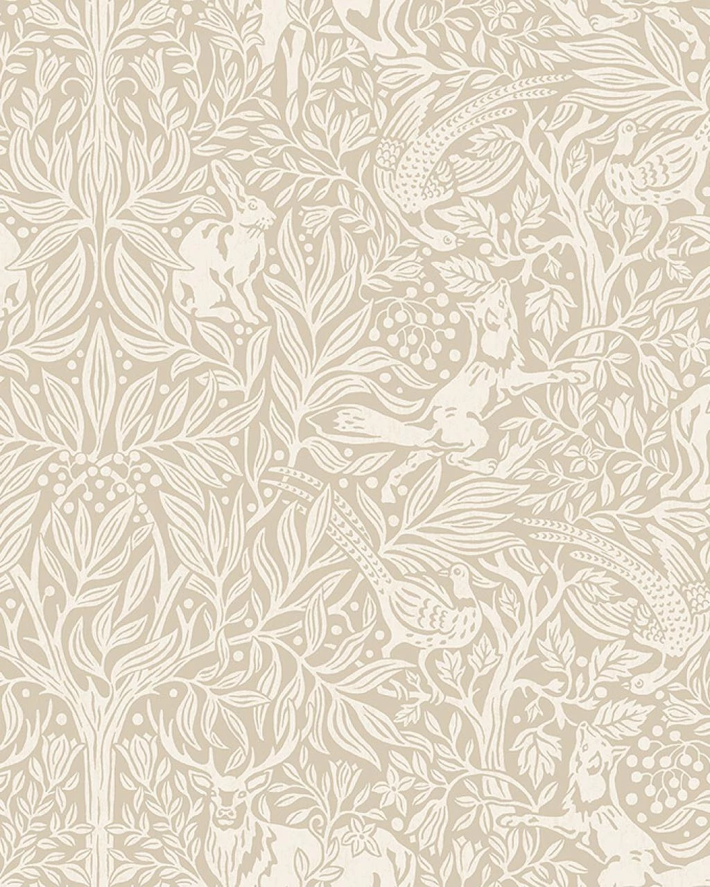 A nemes bézs árnyalatokban készült Under the Elder Tree tapétánk az élet örömeit helyezi a középpontba. Noomi Spange tervezésében egy méltóságteljes szarvas és egy félénk nyúl rejtőzik egy hatalmas bodzafa sűrű lombjai alatt, miközben egy ravasz róka üldözi a menekülő foglyokat, akik egy galagonyabokorban keresnek menedéket. Ezt a gyönyörű, felületi nyomtatású tapétát Ragaszd a nappalidba, előszobádba vagy hálószobádba, hogy az Arts and Crafts stílus ihlette kifejezésmódot teremts, amely fiataloknak és időseknek egyaránt tökéletes.