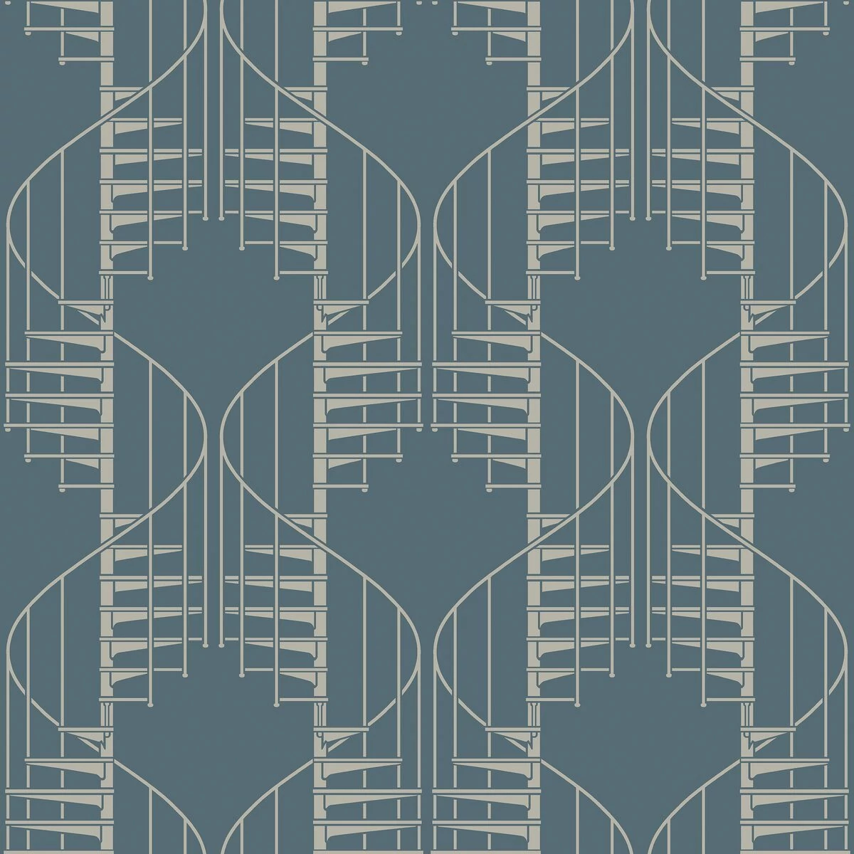 Tompa kék és világosszürke árnyalatokban készült Staircase tapétánk egy 1950-es évekbeli rajzot ábrázol, amelyet a dán építész, Bent Karlby készített. Egyedi mintázat, amely skandináv bájt sugároz; első pillantásra organikus hullámokból álló medálformának tűnik, de közelebbről megvizsgálva a letisztult csigalépcső dizájnja válik nyilvánvalóvá. Ragassza irodájába, hálószobájába vagy előszobájába, hogy egy retro hangulatot varázsoljon elegánsan játékos csavarral.