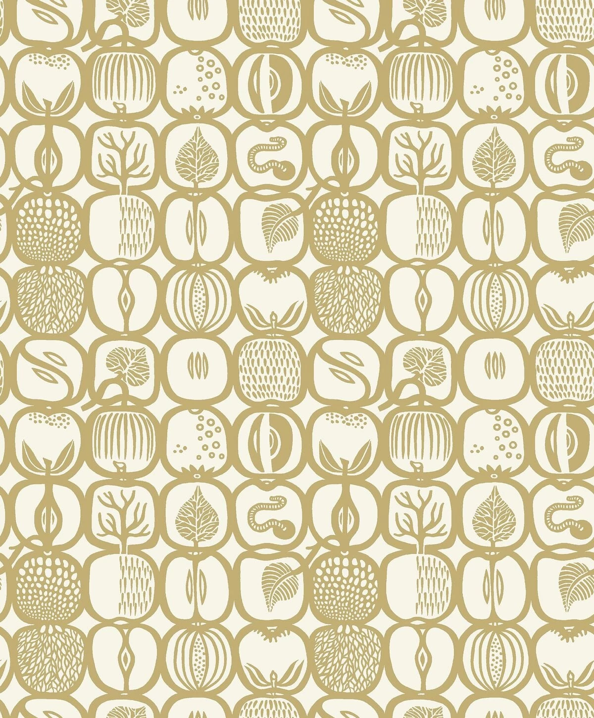 Lágy, homályos sárgára színezve, Fruktlåda tapétánk a középső 1900-as évekbeli dizájnjával időtlen és modern hangulatot teremt otthonában. A népszerű tervező, Stig Lindberg retro gyümölcsmintájával díszítve, stílusa játékos és részletgazdag. Ragassza fel hálószobájában, étkezőjében vagy előszobájában az innovatív, mégis klasszikus megjelenésért.