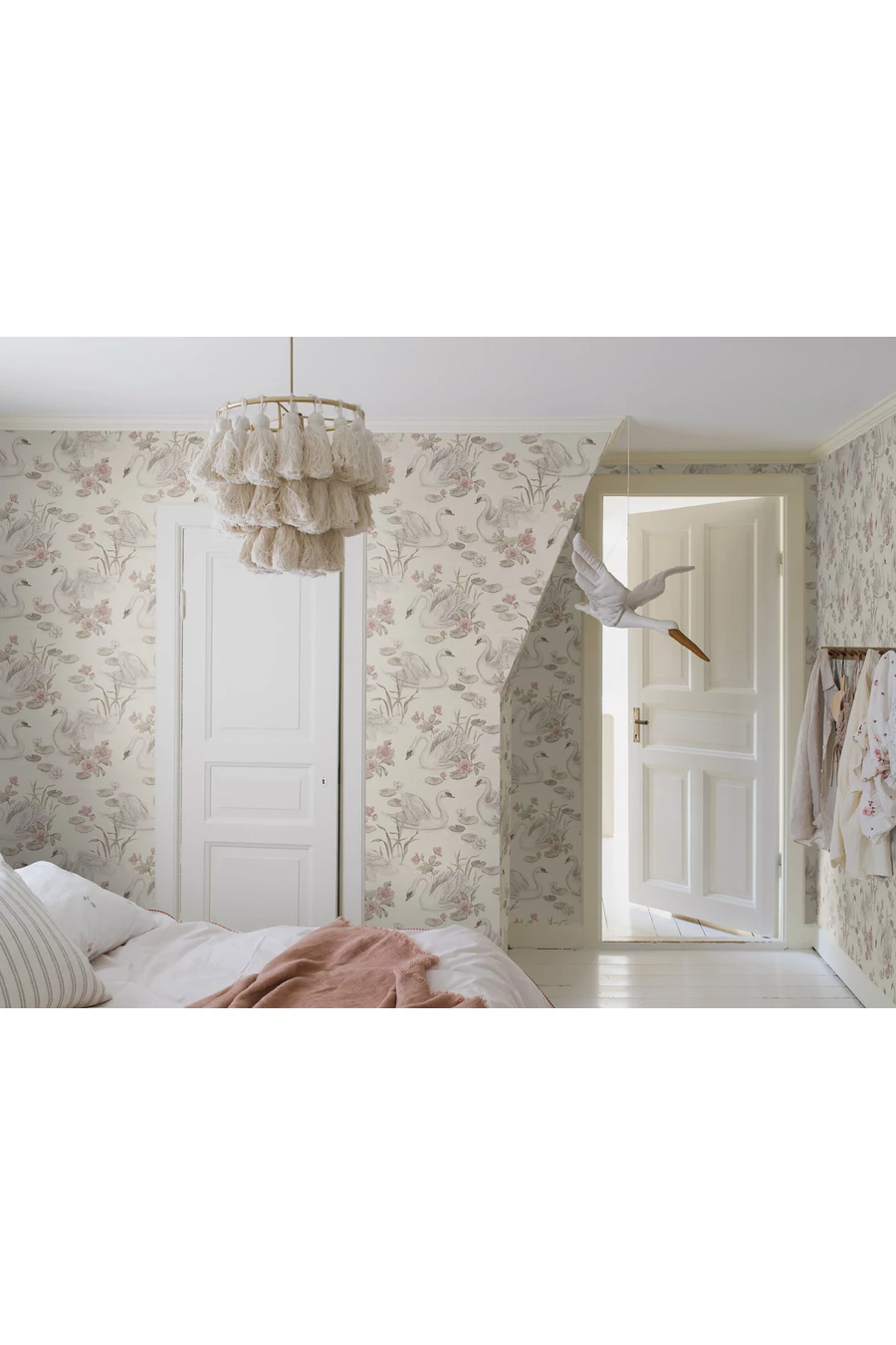 Lépj be egy romantikus álomba a Lily Swan gyerektapétánkkal, mely finom világos rózsaszín és barna árnyalatokban jelenik meg egy meleg fehér háttéren. Elegáns hattyúk siklanak egy békés tavon, melyet tavirózsák és élénk virágok díszítenek, így a környezetbe egy csipetnyi eleganciát és nyugalmat csempész. Ez a bájos Lily Swan tapéta a Boråstapeter és a svéd életmódmárka, a Newbie együttműködéséből született. Ragaszd fel gyermeked hálószobájában, játszószobájában vagy tanulósarkában, hogy időtlen és varázslatos hangulatot teremts, amely gyermeked növekedésével is megőrzi vonzerejét.