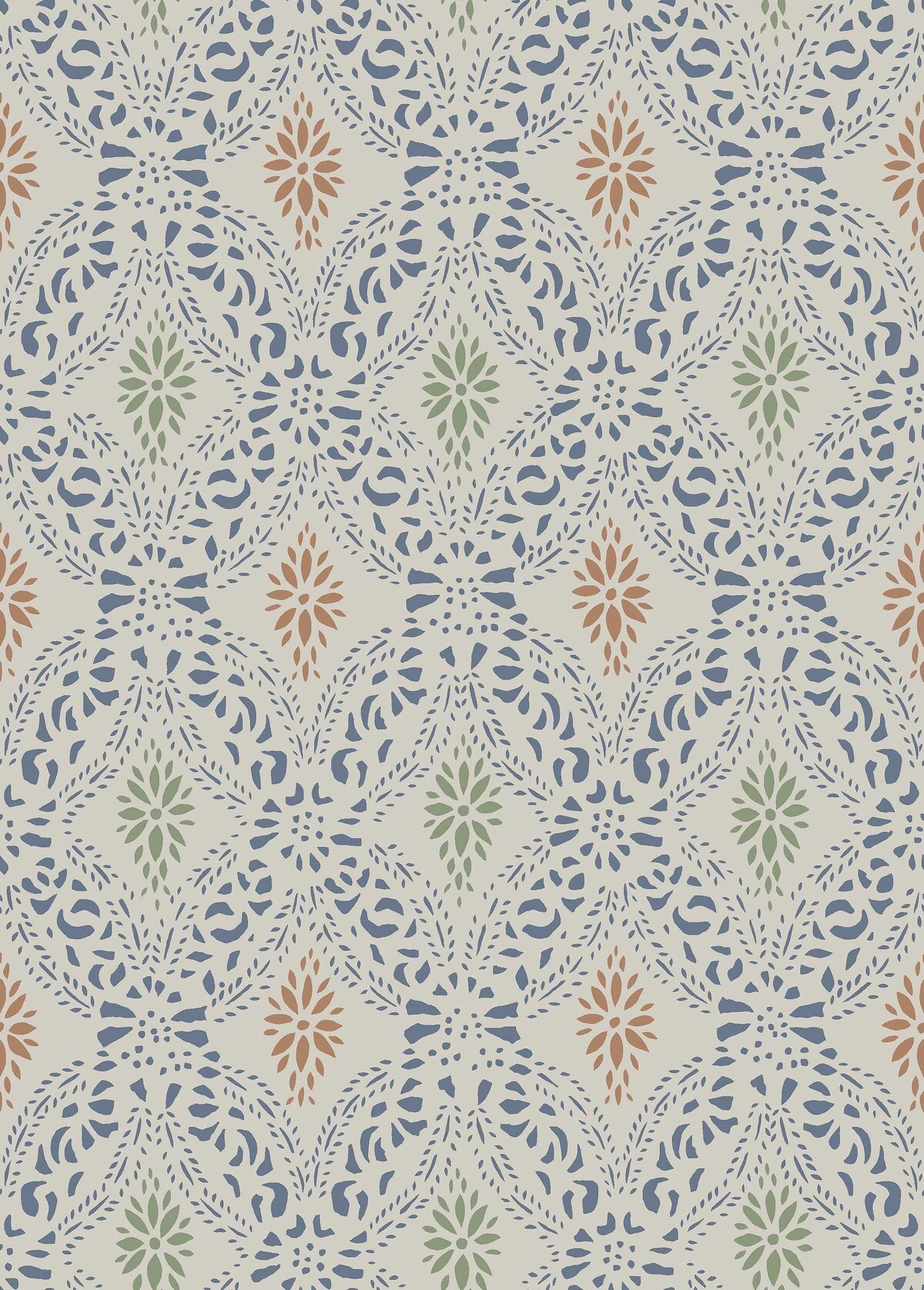 Figyelemfelkeltő és időtlen, Kvarnholmen tapétánk a Kalmar Megyei Múzeum gyűjteményében őrzött sablon ihletésével készült. Lágy szürke háttérrel és finom, csipkeszerű formákkal kék, piros és zöld árnyalatokban, ez a minta az eredeti 1800-as évekbeli palettát idézi, amelyet gyakran természetes földpigmentekből készítettek. Engedd, hogy a svéd népi hagyomány bája életre keljen otthonodban a Kvarnholmen tapétánkkal – egy visszafogott, mégis élénk kifejezés belső tereid számára.
