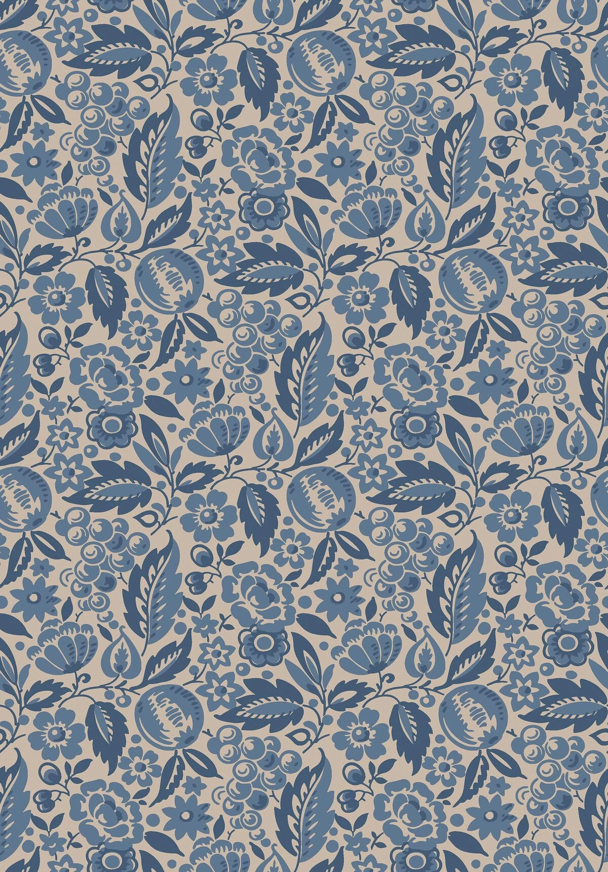 Az Elise tapéta tónuson tónus kék árnyalatokban készült, lenvászon bézs háttéren, és virágokból, levelekből, almákból és bogyókból álló mintázatot mutat. Rusztikus, népi ihletésű, mégis kortárs és modern, a sűrű növényi motívum az 1900-as évek elejére nyúlik vissza, és hagyományos kollagráfiai technikával készült nyomtatással. Az Elise tapétát a konyhába, előszobába vagy nappaliba akasztva hűvös, nyugodt hangulatot teremthetsz, amely mélységgel és érdekességgel teli.
