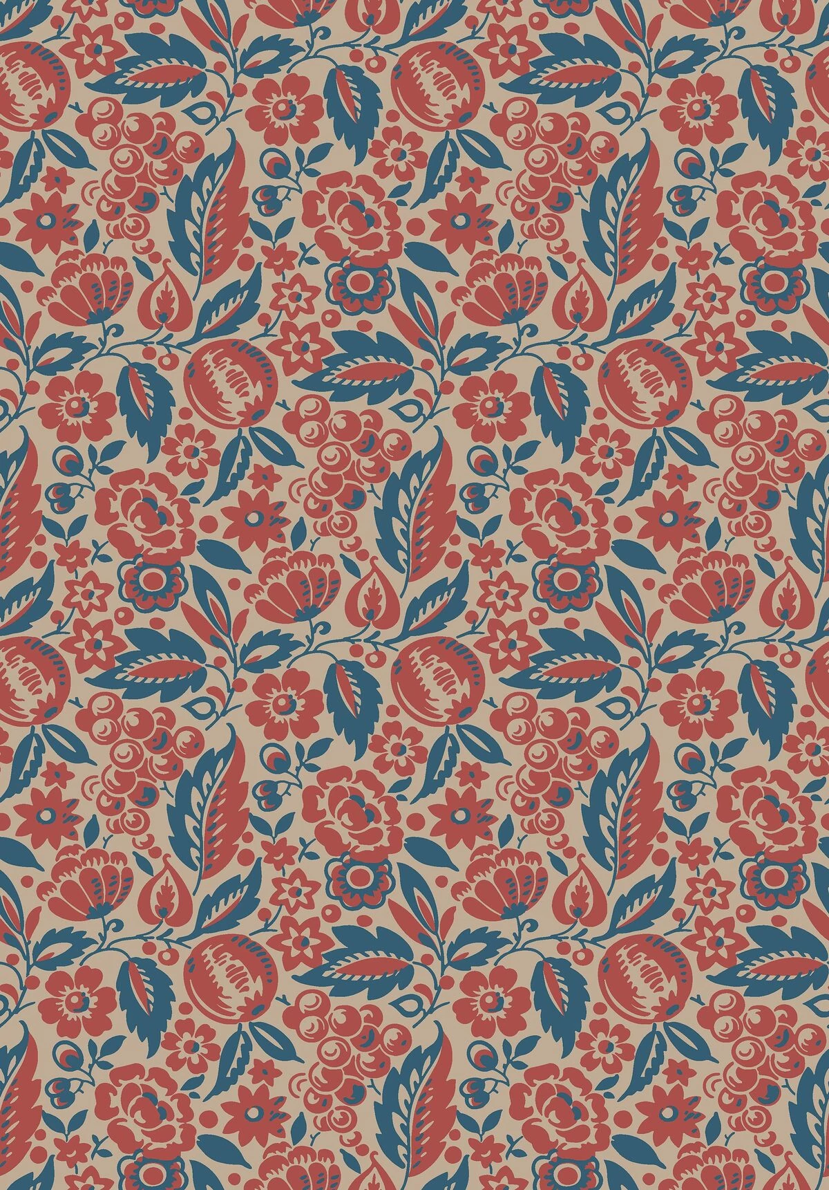 Sétáljon végig a kertben az aratás idején az Elise tapétánkkal, amely klasszikus, népi ihletésű, élénk piros és mély kék színekben pompázik. Rusztikus, sűrű mintázata virágokat, leveleket, gyümölcsöket és bogyókat ábrázol, így elmerülhet ebben a bájos, mesés dizájnban, miközben kényelmesen hátradől. Ez a kollagráfia nyomtatású tapéta tökéletes választás lehet egy hangsúlyos falra, de akár a konyha, étkező vagy hálószoba mind a négy falán is remekül mutat.