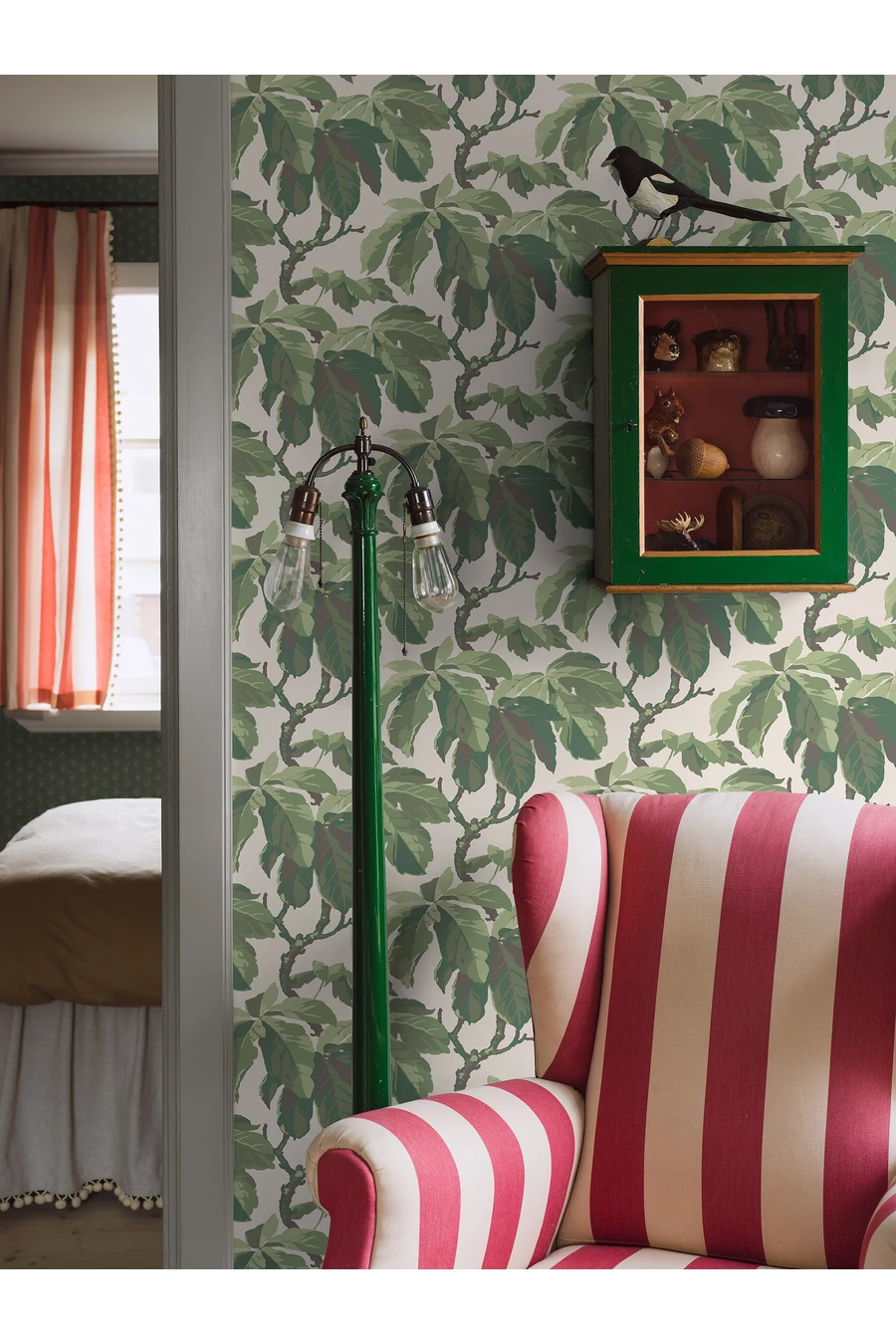 Természetes zöld árnyalatokkal, tojásfehér alapon színezve, a Kastanj tapéta egyedülálló és gyönyörű módja annak, hogy egy kis természetet csempéssz otthonodba. A gesztenyefa stilizált ágai és levelei védelmező, megnyugtató ölelésbe burkolják a falakat, meghitt és hívogató teret teremtve. Ez a kollagráfia nyomtatású tapéta remekül működik akár hangsúlyos falnak, akár az összes fal befedésére. Ragaszd a nappalidba, hálószobádba vagy irodádba, hogy harmonikus légkört teremts.