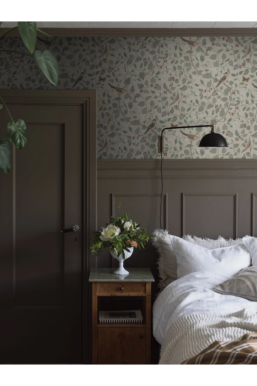 Színei visszafogott bézs, zöld, fehér, barna és sárga árnyalatok mulberry vörös árnyalatokkal, a Sångfåglar tapéta visszafogott, mégis tele van romantikával és stílussal. Akvarell és kréta technikával festett, szerény, mégis gyönyörű énekesmadarak és pillangók jelennek meg a szederfa ágai és az édes mock orange virágai között ezen a harmonikus tapétán. Ezt a Sissa Sundling által tervezett csodás tapétát Ragaszd a hálószobádba, irodádba vagy előszobádba, hogy nyugalmat sugárzó, mégis érdekes és mélységet adó megjelenést kapj.