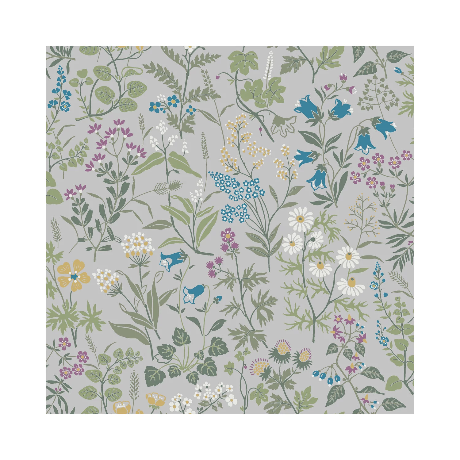 Vidám zöld, arany, kék és lila árnyalatokkal színezve, egy lágy kékeszürke háttéren, a Flora tapéta könnyed, világos és derűs hangulatot áraszt. Díszítsd falait a vágyakozó, álmodozó svéd réti virágok varázsával, hogy nyugodt és harmonikus légkört teremts. Kiválóan illik különböző helyiségekbe és színvilágokhoz, Ragaszd fel az étkezőben, hálószobában vagy konyhában, hogy virágos és romantikus karaktert adj a térnek.