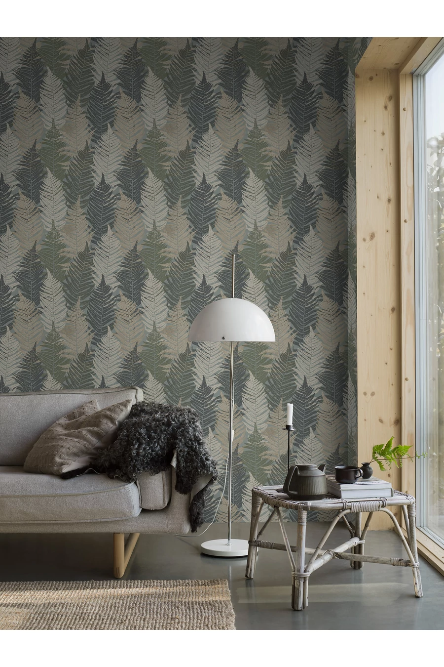 Sűrű virágmintájával a lenyűgöző Fern Forest tapéta elegáns és figyelemfelkeltő stílusnyilatkozatot tesz. Nyári hangulatú, kontrasztos kék, zöld, krém és bézs árnyalatokból álló színpalettájával tökéletes választás hálószobákba és nappalikba, hogy buja és nyugodt atmoszférát teremtsen.