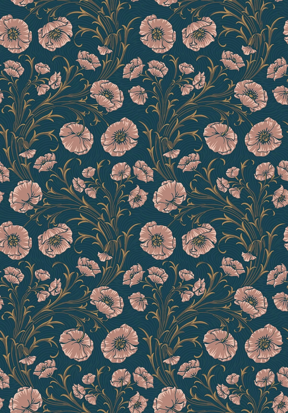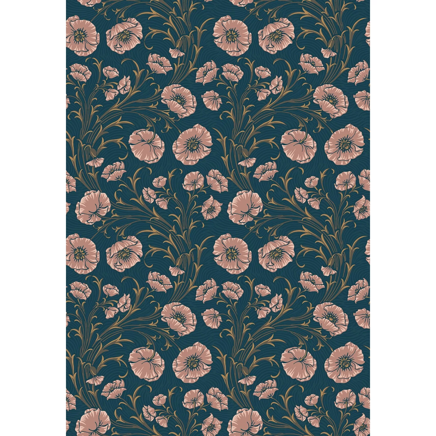 Poppy Flow tapétánk tompa rózsaszín és mély, gazdag kék árnyalatokban pompázik, tele romantikával és stílussal. Klasszikus, szecessziós mákvirág-illusztrációval díszített, élénk színekkel, amelyek egy drámai háttéren kanyargó mintát alkotnak, így tele van részletekkel és mélységgel. A tapéta remekül mutat egy szoba mind a négy falán, de kiemelő falnak is tökéletes. Ragaszd a nappalidba, hálószobádba vagy olvasósarkodba egy bohém és játékos oázis megteremtéséhez.