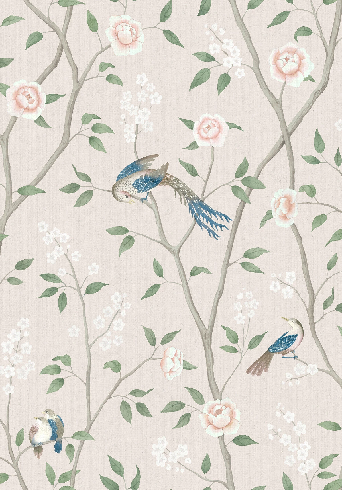 Lenyűgözően színezett, finom púderes rózsaszín, kék, szürke és zöld árnyalatokkal meleg krémszínű háttéren, varázslatos Paradise Birds tapétánk a kínai fali művészet ihletésével készült, amely a 18. századi arisztokrata otthonok divatjának csúcsa volt. A paradicsommadarakat ábrázolja, hosszú, díszes tollazatukkal, melyek ágak között ülnek, amelyeket finom keleti virágok díszítenek. Ez a tapéta luxus érzetet és fantasztikus mélységet kölcsönöz a falaknak. Ragaszd a nappalidba, hálószobádba vagy előszobádba, hogy bájos, elegáns és romantikus hangulatot varázsolj stílussal és ragyogással.