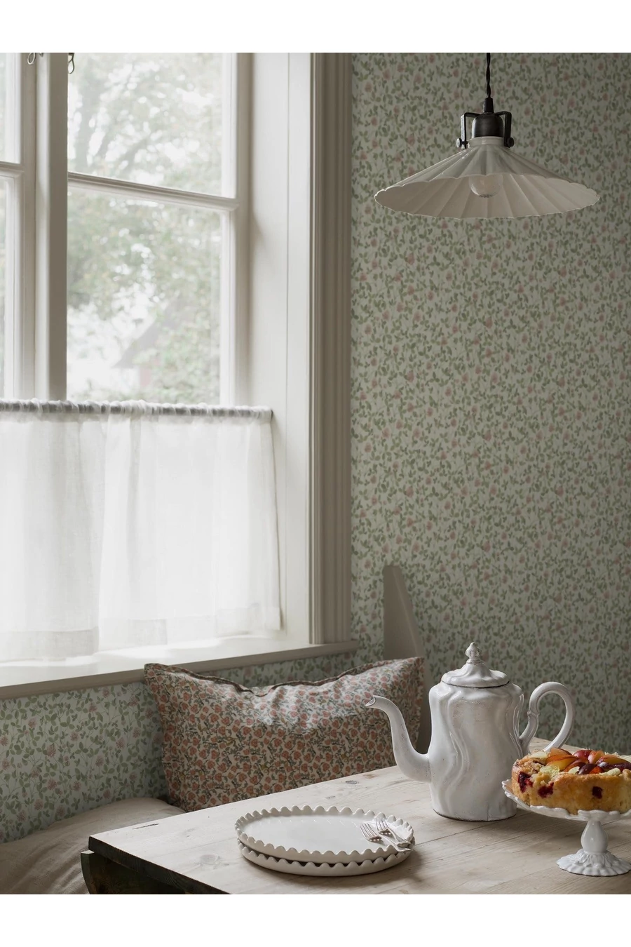 A Boråstapeter archívumában található 1970-es évekbeli tapéta ihlette Klöver tapéta a vörös here élénk szépségét idézi meg rózsaszínes virágaival és élénk zöld lombjával. A sűrű, apró mintázatú tapéta harmonikus hatást kelt a falon, szinte monokróm megjelenéssel. A Klöver tapéta a nyári rét örömét és energiáját hozza be otthonába, vidám lendületet adva a környező térnek.