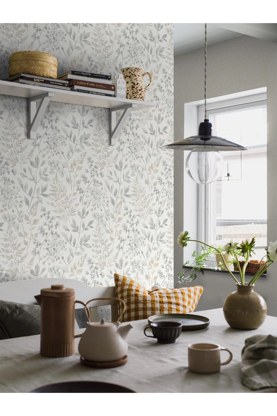 Friss fehér alapon élénk, hívogató világos bézs és szürke árnyalatokban pompázó Sigrid tapétánkon finom, mégis gyönyörűen részletezett páfránymotívum található. A környezetének nyugalmat és harmóniát sugárzó páfrányok végigkúsznak a falon, egy csipetnyi vintage eleganciát csempészve otthonodba. Akár hálószobádban, konyhádban vagy irodádban is remek választás, hogy klasszikus, mégis modern hangulatot teremts.