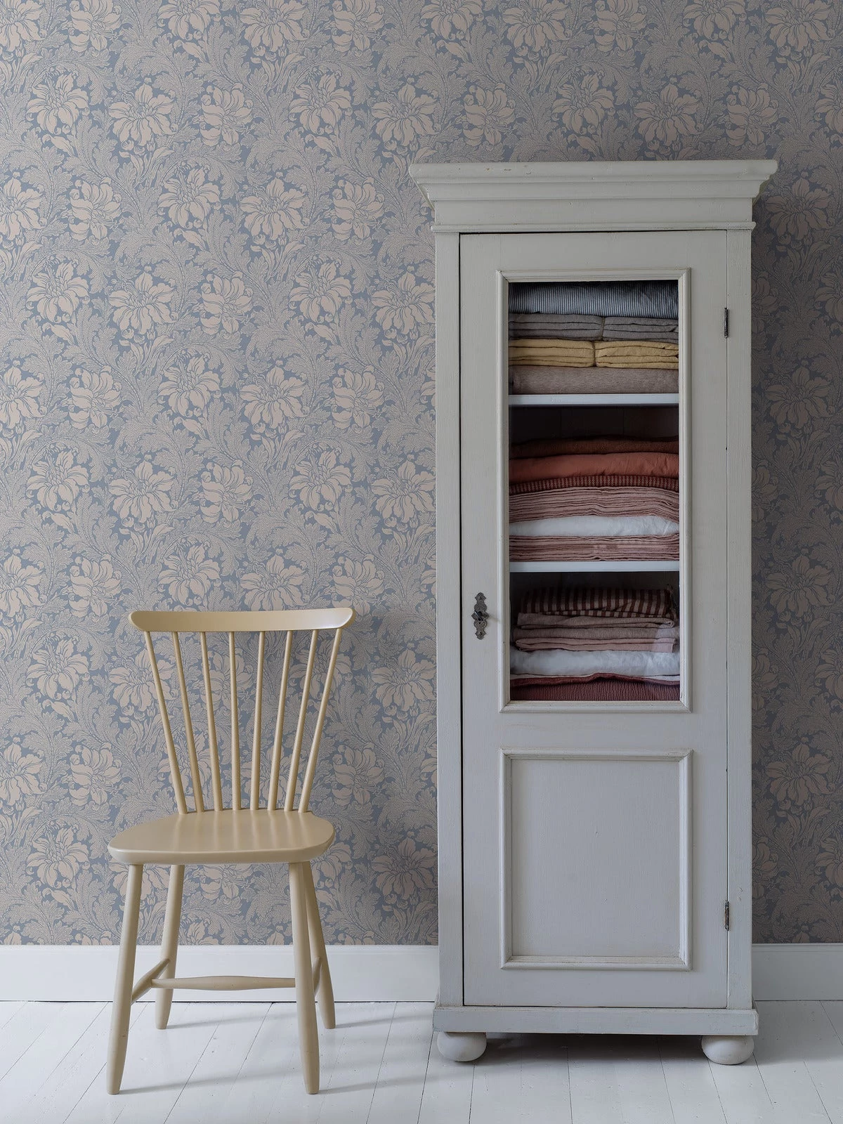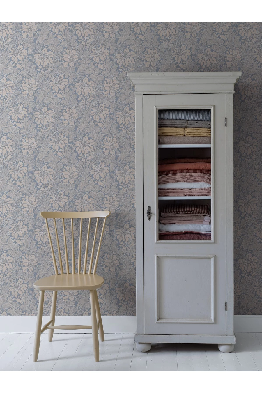 Levendulakék és agyagbézs árnyalatokban színezett Acanthus tapétánkat az 1840-es években terveztek körtefa nyomdablokkokkal. A 1970-es és 1980-as években újra divatba jött, és ma éppolyan kortárs és népszerű, mint akkor. A nevével fémjelzett, impozáns virágcsúcsokkal díszített növényt ábrázoló mintát a kontrasztos árnyalatok ügyes játéka kelti életre. Ragaszd hálószobádba vagy nappalidba egy klasszikus, luxus skandináv stílusért.