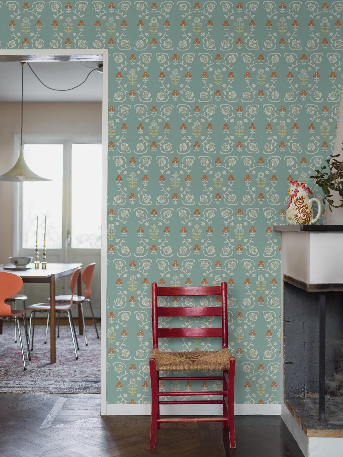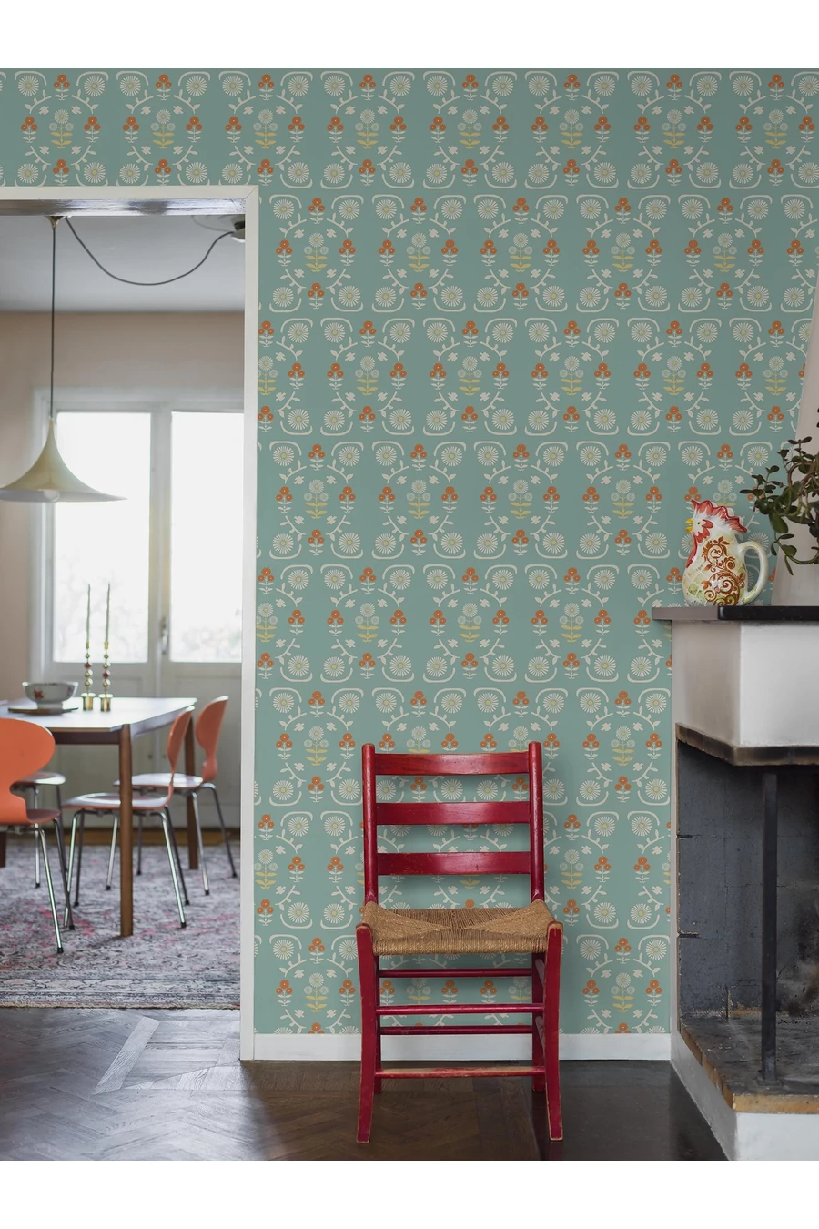 Az Isolde tapéta élénk kék alapon élénk piros, mustársárga és friss fehér részletekkel tűnik ki, így vibráló és élettel teli hangulatot teremt. Az Astrid Wilson által tervezett, felületi nyomással készült mintázat játékos medálmotívumokat mutat, amelyek feldobják a környező teret. Varázsoljon vidám és barátságos hangulatot a helyiségekbe ezzel a gyönyörű Isolde tapétával.
