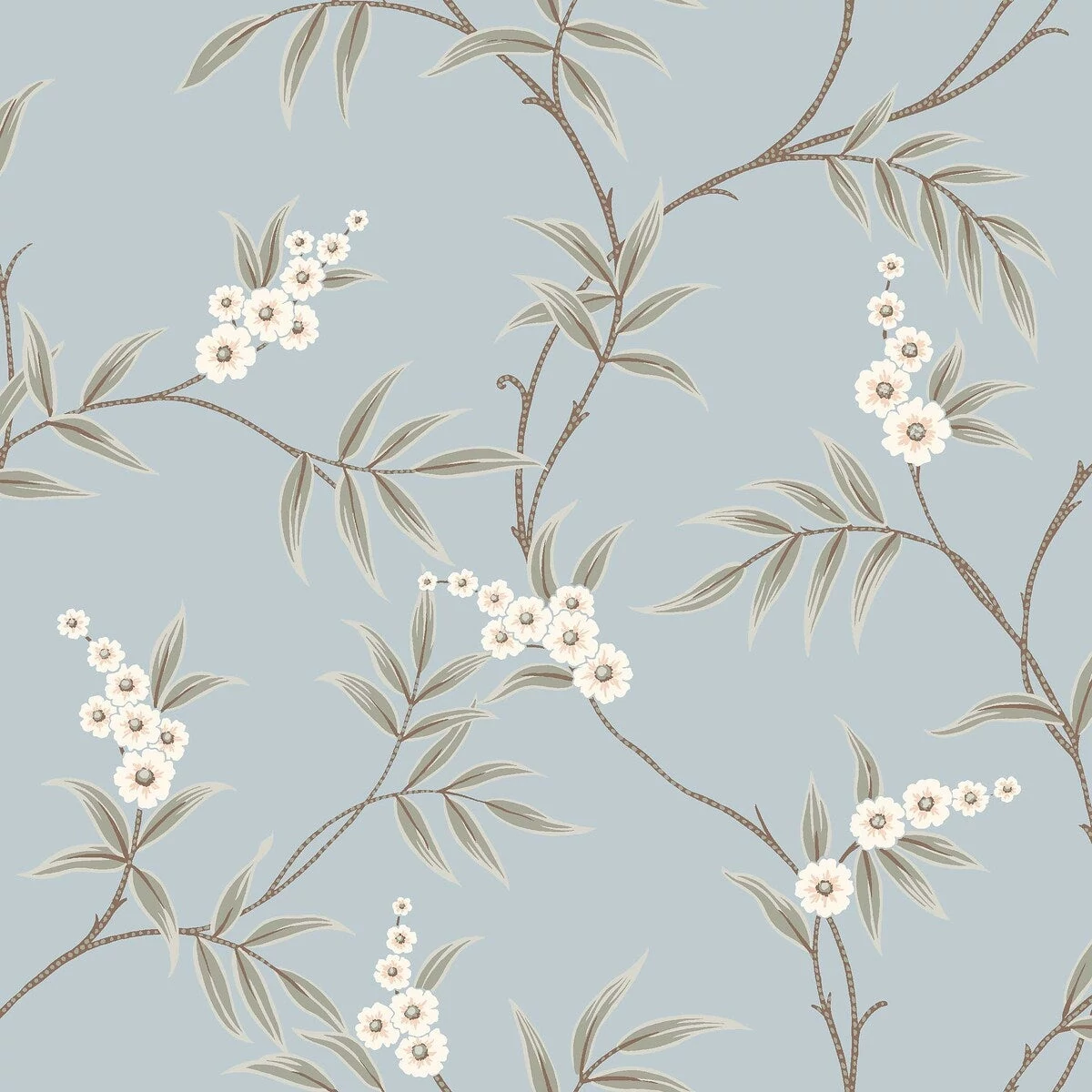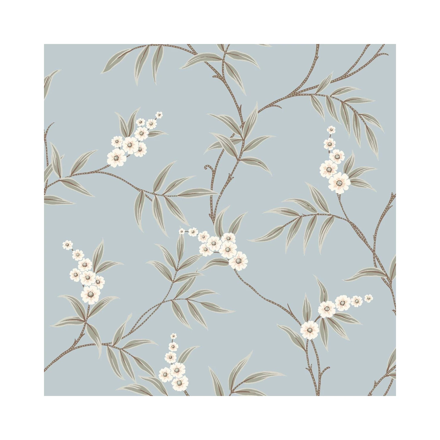 Floral Tree tapétánk zöld leveleket és finom fehér virágokat ötvöz egy nyugodt égkék háttéren, klasszikus kínai motívumokat idézve modern stílusban. A felületi mintázat légies, harmonikus összhatást nyújt, tökéletes választás olyan terekbe, amelyek a nyugalmat és a természetes szépséget kedvelik. Varázsoljon időtlen eleganciát falaira a Floral Tree könnyed virágmintájával és lágy színeivel.