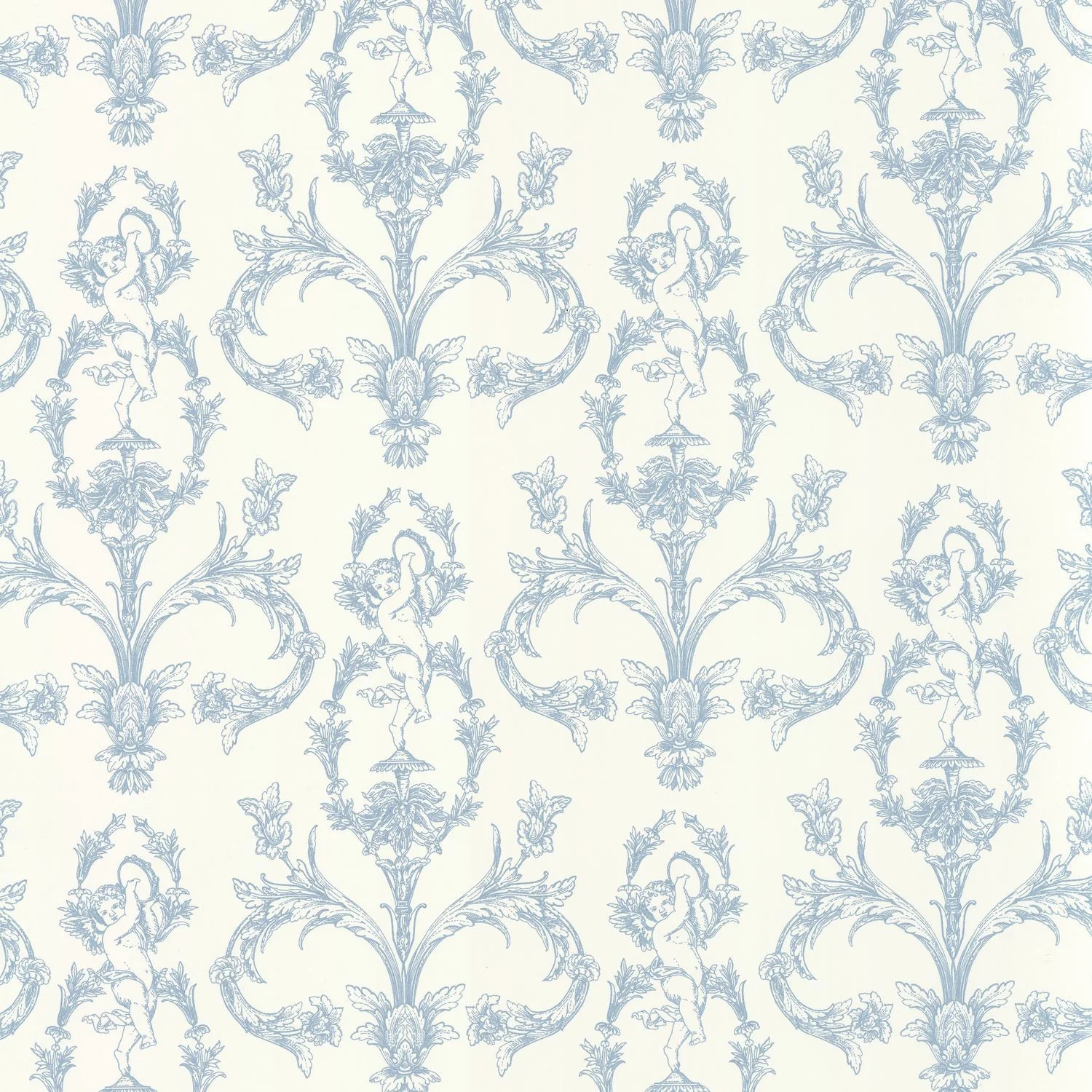Angyalka-kórus. A bájos Séraphin repkedő puttókat ábrázol virágos arabeszkek hátterében. Az eredmény egyszerre dinamikus és finoman részletezett minta – igazi kis mestermű.