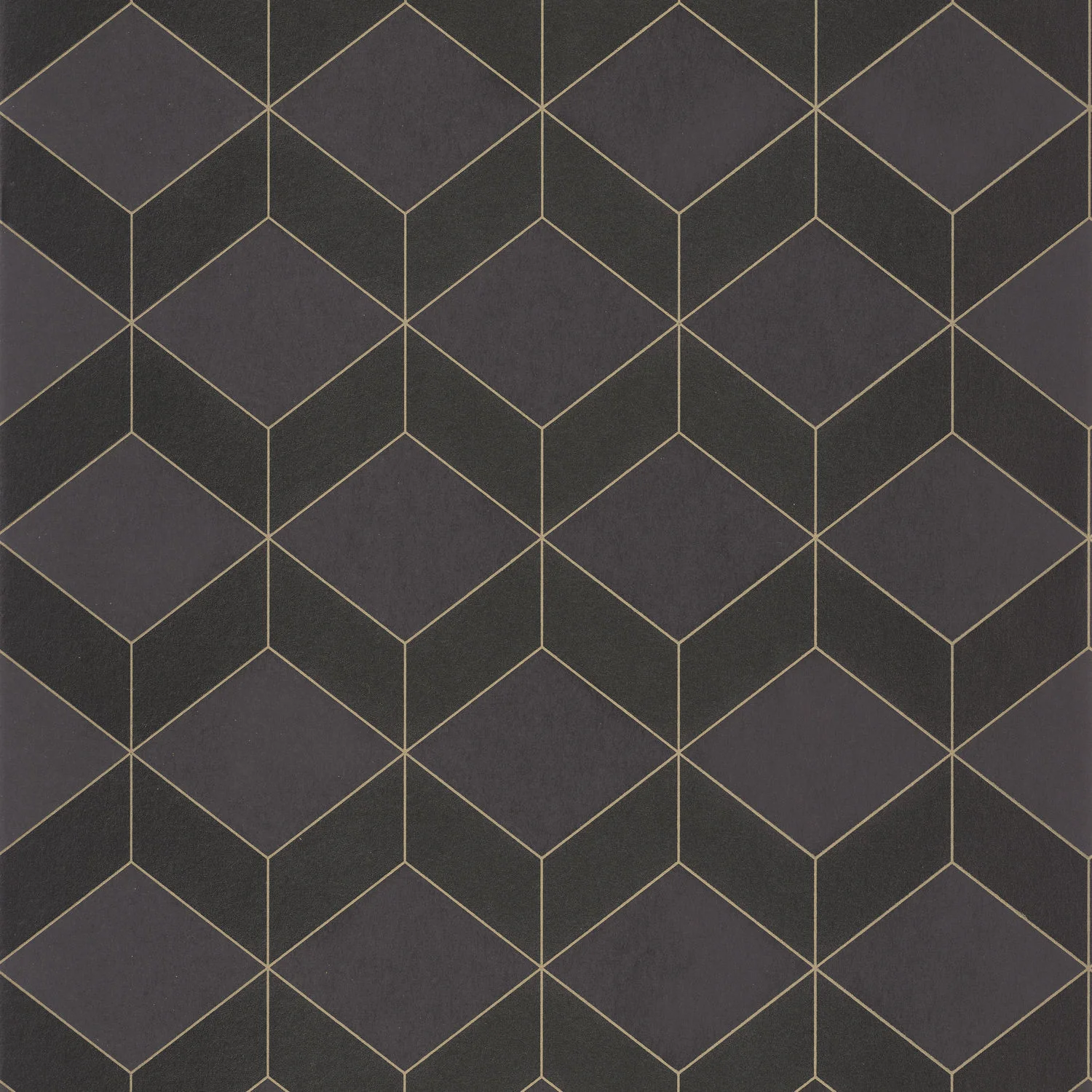 Egy geometriai mintázat, amely matt és irizáló kontrasztokkal 3D hatást kelt, finoman megrajzolt arany vonalakkal. A különböző textúrák sajátos módon ragyognak a fényben, harmonikus és finom színvilágban.