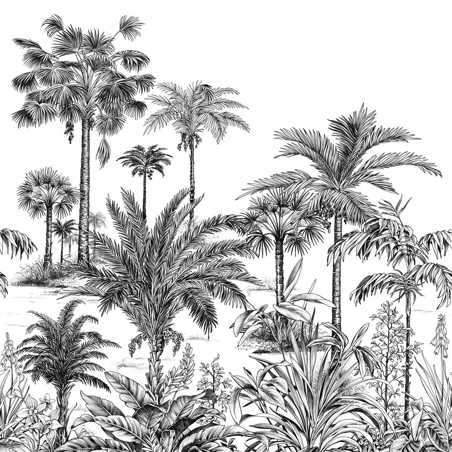 Pálmák, alokáziák és más trópusi növények virágoznak falainkon. A Nicoya két változatban elérhető: fekete-fehér metszetként és finoman színezett, antik képeskönyvre emlékeztető verzióban.