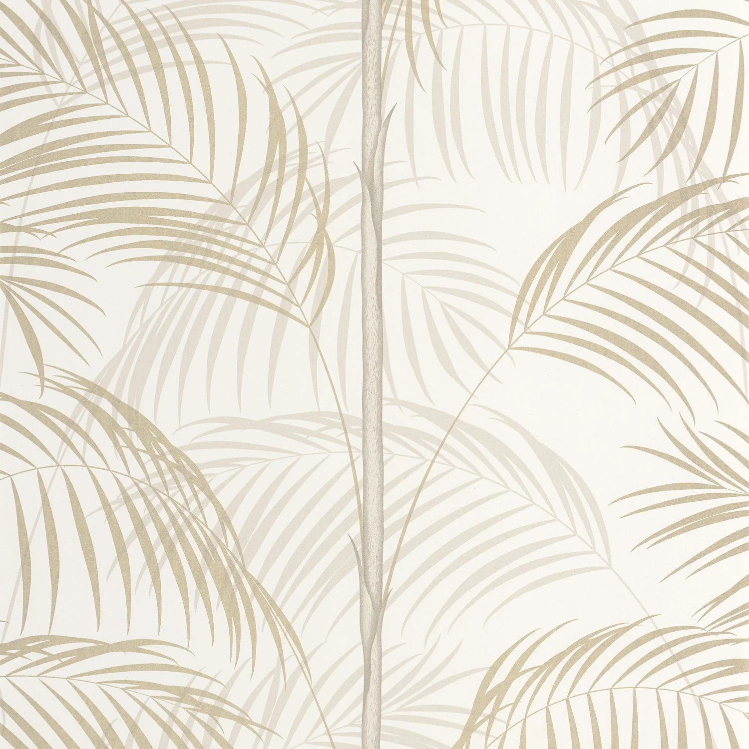 Arany pálmák alatt. A Le Tout-Paris finoman elegáns mintája XL méretű pálmaleveleket ölel körbe arany- vagy ezüstfényű részletekkel. Természetes, organikus karakterét finom zöld árnyalatok emelik ki: olíva, khaki és lombzöld.