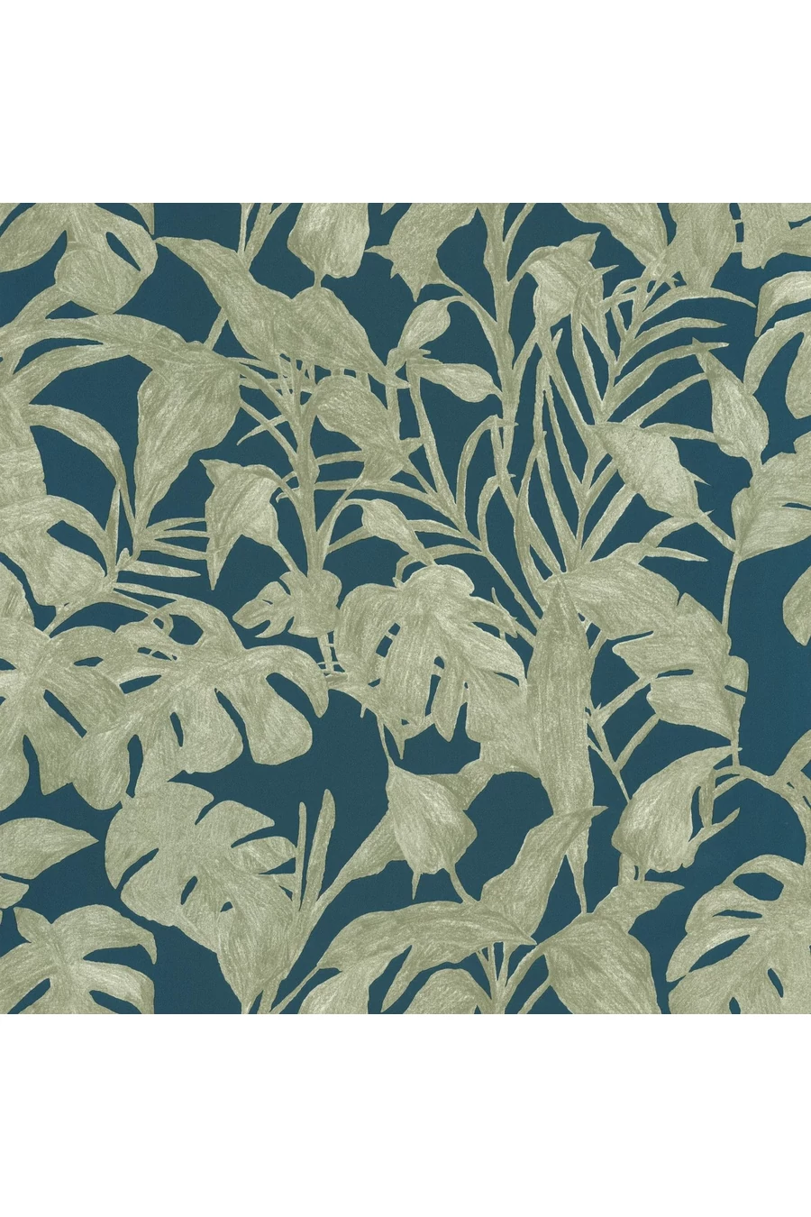 A design és a valóság határán a növényminta kétszínű zölddel játszik: világoszöld kézzel festve az előtérben, mély zöldes-szürke háttéren, amely távoli hegyeket idéz. Vamos* Bogotába! *Induljunk