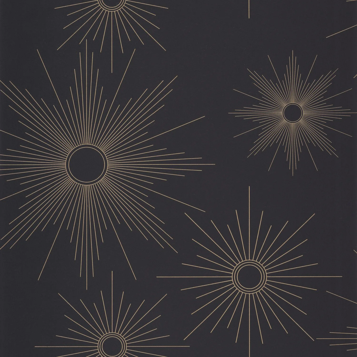 Ez a napsütés az életünkben! Ez a tapéta egy óda ehhez a ragyogó csillaghoz, amely nem egy, hanem öt napmotívumot vonultat fel a stílusos Art Deco témához illő jellegzetes színekben.