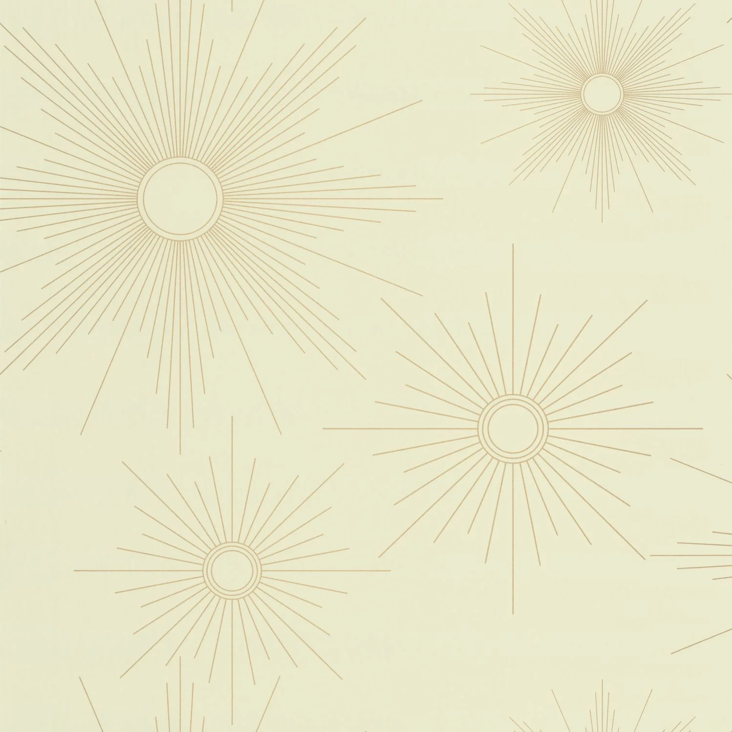 Ez a napsütés az életünkben! Ez a tapéta egy óda ehhez a ragyogó csillaghoz, amely nem egy, hanem öt napmotívumot vonultat fel a stílusos Art Deco témához illő jellegzetes színekben.