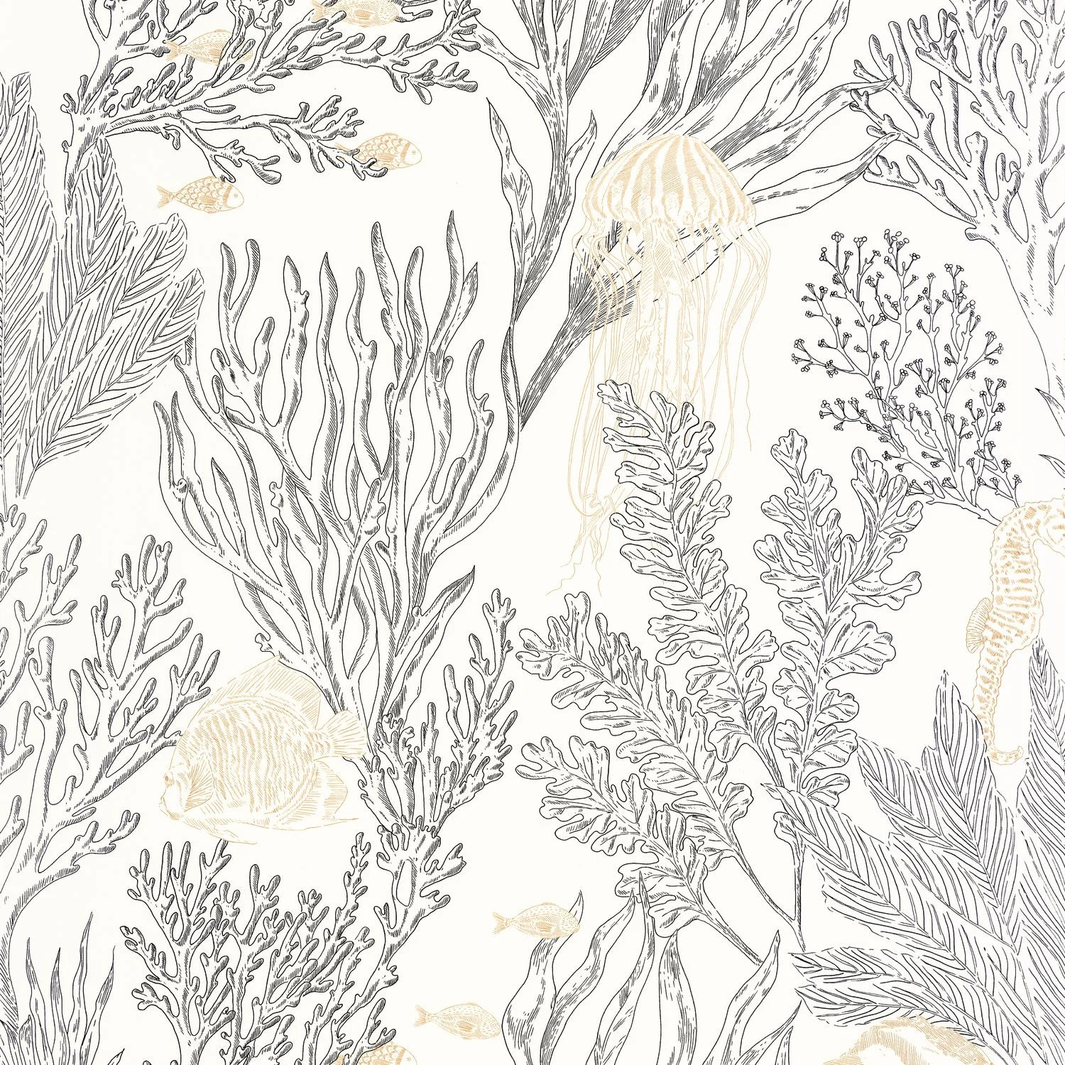 Merülj el a tenger mélységeiben ezzel az eredeti mintával, amely a rézmetszetek stílusát idézi. Az élőlények arany díszítést kapnak, a háttér pedig mély fekete vagy világos fehér.