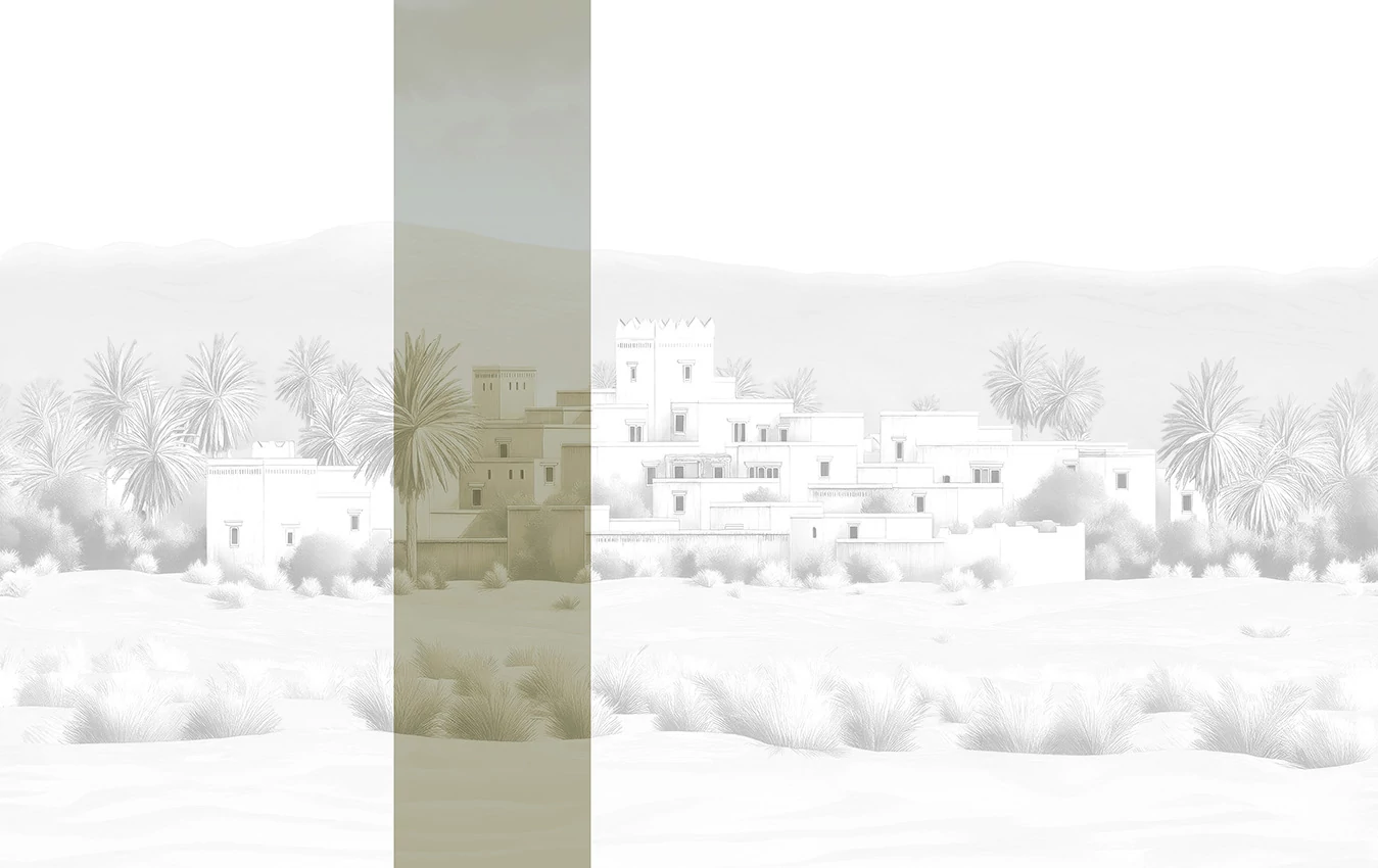 A JV 202 Murals Decor kollekció széles választékát kínálja dekoratív falfestményeknek, amelyekkel egyedi hangulatot és személyre szabott stílust varázsolhatunk a térbe. Egy új témákkal teli ajánlat, amely egy lebontási rendszert alkalmaz, ami a kollekció sarokköve a könnyű választás és alkalmazás érdekében. Egy arab város bontakozik ki a távolban a sivatag csendjében, homokdűnék, bokrok és pálmafák között; a kék változat egyértelmű utalás Chefchaouenre, a marokkói jellegzetes „kék városra”. A Todra árnyalatai, melyeket dombornyomás támogat, meleget és karaktert kölcsönöznek a tereknek, és újraalkotják a homok textúráját.
