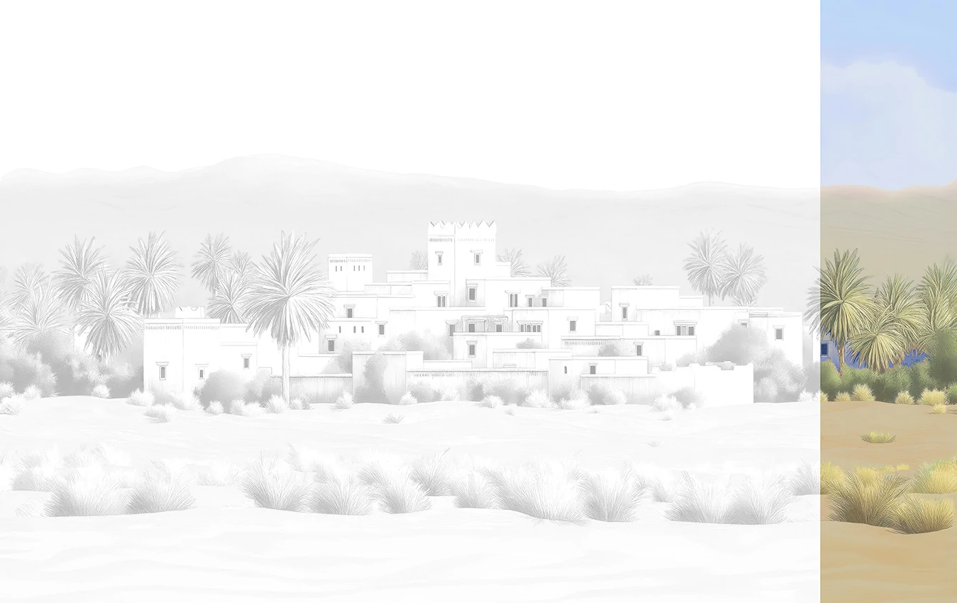 A JV 202 Murals Decor kollekció széles választékát kínálja dekoratív falfestményeknek, amelyekkel egyedi hangulatot és személyre szabott stílust varázsolhatunk a térbe. Egy új témákkal teli ajánlat, amely egy lebontási rendszert alkalmaz, ami a kollekció sarokköve a könnyű választás és alkalmazás érdekében. Egy arab város bontakozik ki a távolban a sivatag csendjében, homokdűnék, bokrok és pálmafák között; a kék változat egyértelmű utalás Chefchaouenre, a marokkói jellegzetes „kék városra”. A Todra árnyalatai, melyeket dombornyomás támogat, meleget és karaktert kölcsönöznek a tereknek, és újraalkotják a homok textúráját.