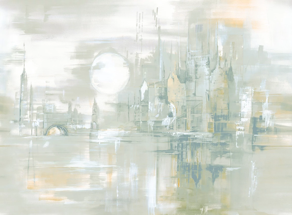 A JV 202 Murals Decor kollekció széles választékát kínálja dekoratív falfestményeknek, amelyekkel egyedi hangulatot és személyre szabott stílust varázsolhatunk a térbe. Egy olyan új témákkal teli ajánlat, amely egy lebontási rendszert alkalmaz, ami a kollekció sarokköve a könnyű választás és alkalmazás érdekében. Egy város, amelyet a hold fénye világít meg, visszatükröződve a folyón, amely átszeli, fény- és árnyjátékban. A dombornyomás kiemeli a minta perspektíváját és teret ad a környezetnek; az ezüst alapú változatban a fémes hatás körvonalazza a holdat, kiemelve azt, így fénypontot teremtve a helyiségben.