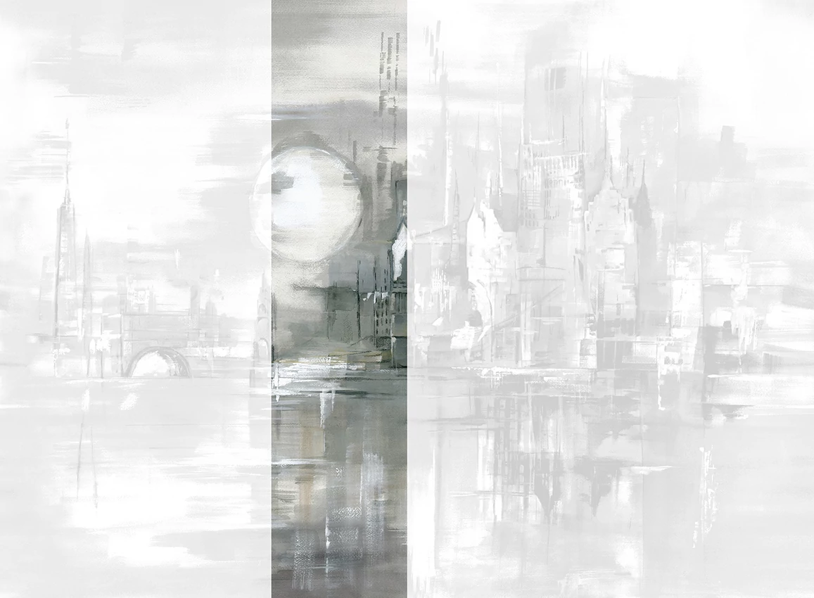 A JV 202 Murals Decor kollekció széles választékát kínálja dekoratív falfestményeknek, amelyekkel egyedi hangulatot és személyre szabott stílust varázsolhatunk a térbe. Egy olyan új témákkal teli ajánlat, amely egy lebontási rendszert alkalmaz, ami a kollekció sarokköve a könnyű választás és alkalmazás érdekében. Egy város, amelyet a hold fénye világít meg, visszatükröződve a folyón, amely átszeli, fény- és árnyjátékban. A dombornyomás kiemeli a minta perspektíváját és teret ad a környezetnek; az ezüst alapú változatban a fémes hatás körvonalazza a holdat, kiemelve azt, így fénypontot teremtve a helyiségben.