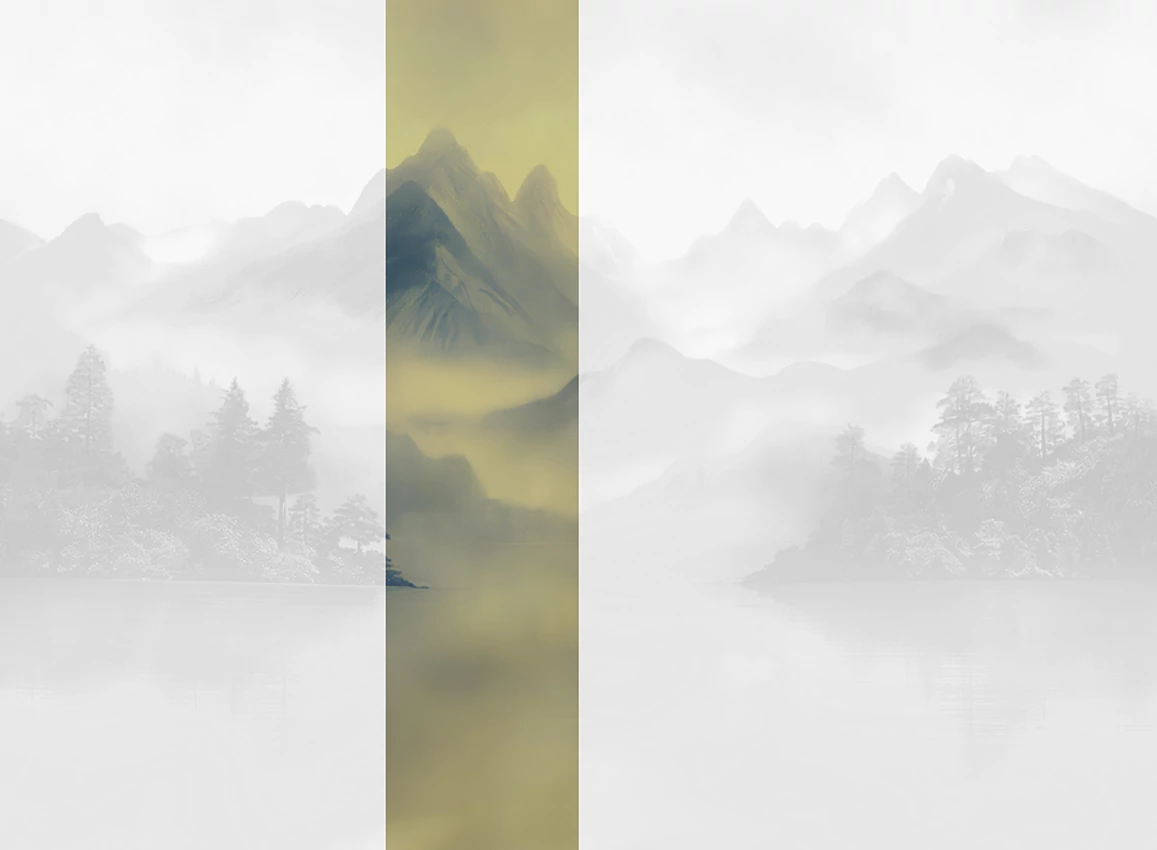 A JV 202 Murals Decor kollekció széles választékát kínálja dekoratív falfestményeknek, amelyekkel egyedi hangulatot és személyre szabott stílust varázsolhat otthonába. Az új motívumokkal teli kínálat egy lebontási rendszert alkalmaz, amely a kollekció sarokköve, megkönnyítve a választást és az alkalmazást. Egy kínai hegylánc ihlette tájat ábrázol, amelyet felhők és köd ölelnek körül. Az erdő, amelyet a hegyek rejtenek, visszatükröződik a tóban, árnyalatokat teremtve, amelyek mélységet kölcsönöznek a tereknek; ezt a hatást fokozza a fémes változat, amely kiemeli a hegyeket, és még tágasabbá varázsolja a teret.