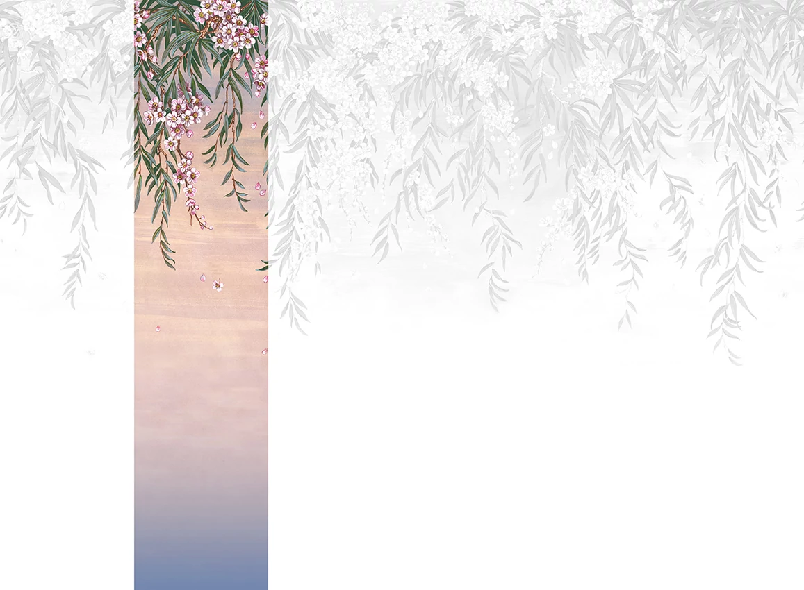 A JV 202 Murals Decor kollekció széles választékban kínál dekoratív falfestményeket, amelyekkel egyedi hangulatot és személyre szabott stílust varázsolhat otthonába vagy irodájába. Az új motívumokkal teli kínálat egy lebontási rendszert alkalmaz, amely a kollekció sarokköve, megkönnyítve a választást és a felhelyezést. Oleander virágok, melyeket egy lágy szellő ringat, finoman lebegve a talaj felé. A háttér árnyalatai, valamint a mozgás és mélység hatása harmonikussá és pihentetővé teszi mind a közösségi, mind a privát tereket.