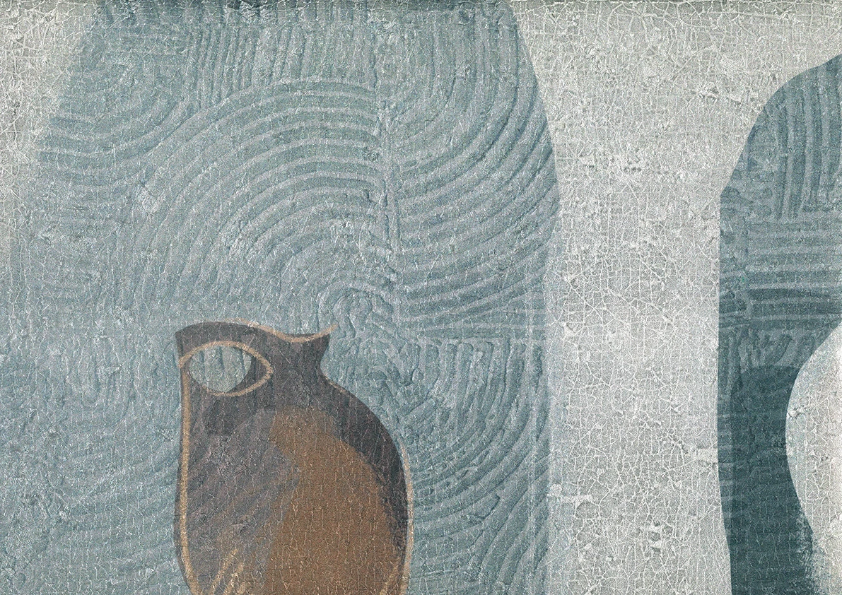 Ez a kollekció a mediterrán esztétikát ünnepli, reprodukálva a jellegzetes textúrákat és poros színeket, kiemelve annak eleganciáját és stílusát: a falak, házak és beton újraértelmezése az építészet és tartósság szimbólumaiként, művészi felületekkel gazdagítva. Falfestmény két változatban, egy meleg, arany és terrakotta árnyalatú fémes, valamint egy hűvös, ezüst és fehér tónusú, amely egy könyvespolcot ábrázol, ahol vázák és kancsók rendezett és precíz elrendezésben láthatók. A design dinamikus hatást kelt, tökéletes a fal mélységének és eleganciájának megadásához, miközben a melegség és kifinomultság egyensúlyát közvetíti, ideális kortárs környezetekbe, amelyek stílusos és személyes hangulatot kívánnak.