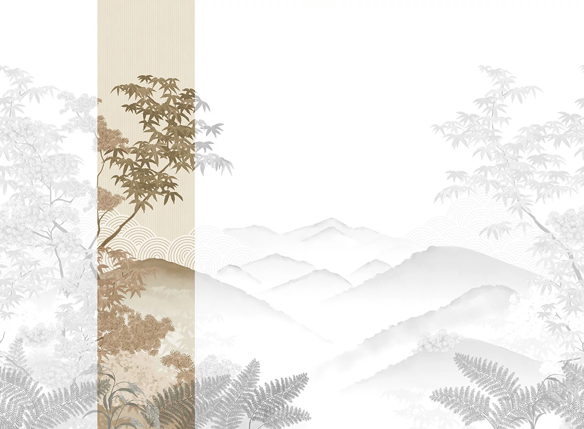 JV Napnyugta japánkertben bézs vinyl poszter tapéta Invermere Beige 68 cm X 3 m