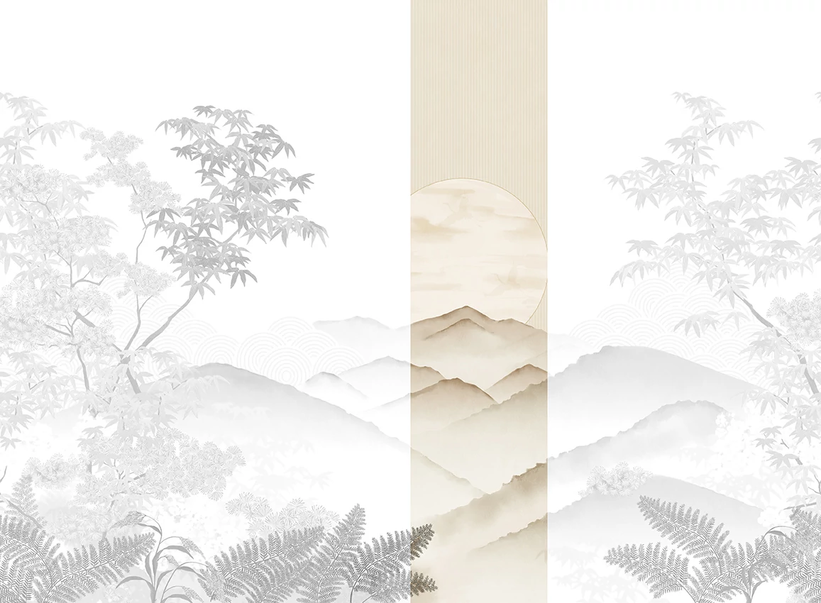 JV Napnyugta japánkertben bézs vinyl poszter tapéta Invermere Beige 68 cm X 3 m