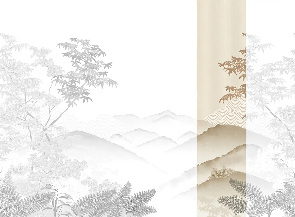 JV Napnyugta japánkertben bézs vinyl poszter tapéta Invermere Beige 68 cm X 3 m