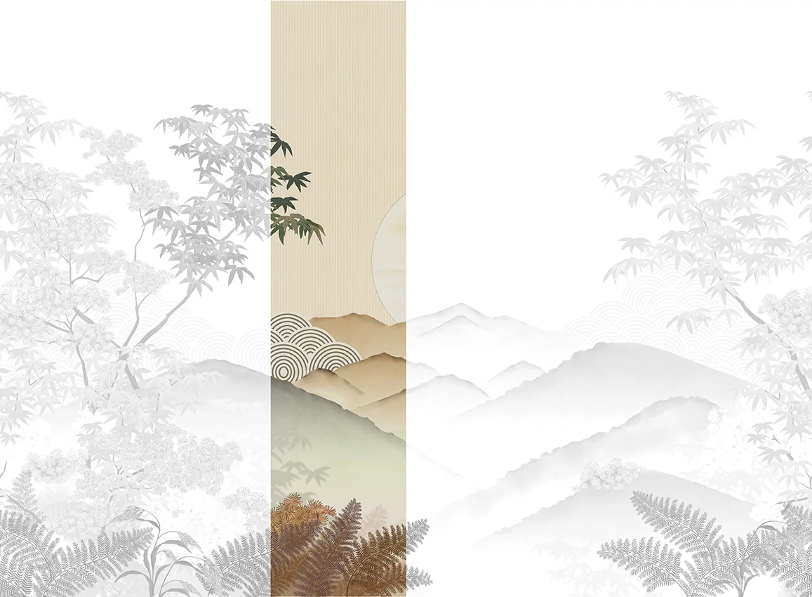 A JV 202 Murals Decor kollekció széles választékát kínálja dekoratív falfestményeknek, amelyekkel egyedi hangulatot és személyre szabott stílust varázsolhatunk a térbe. Egy olyan újdonságokkal teli ajánlat, amely egy lebontási rendszert alkalmaz, ami a kollekció sarokköve a könnyű választás és alkalmazás érdekében. Egy dombok közé ékelt tájkép, ahol a főszereplő a nap, amely éppen lenyugszik, és az utolsó fényeket adja a völgynek. Invermere, amelyet egy kerek, geometrikus motívum gazdagít, amely a dombok mögül emelkedik ki, mélységet és dinamizmust kölcsönözve, egyértelmű utalásként a japán kertekre.