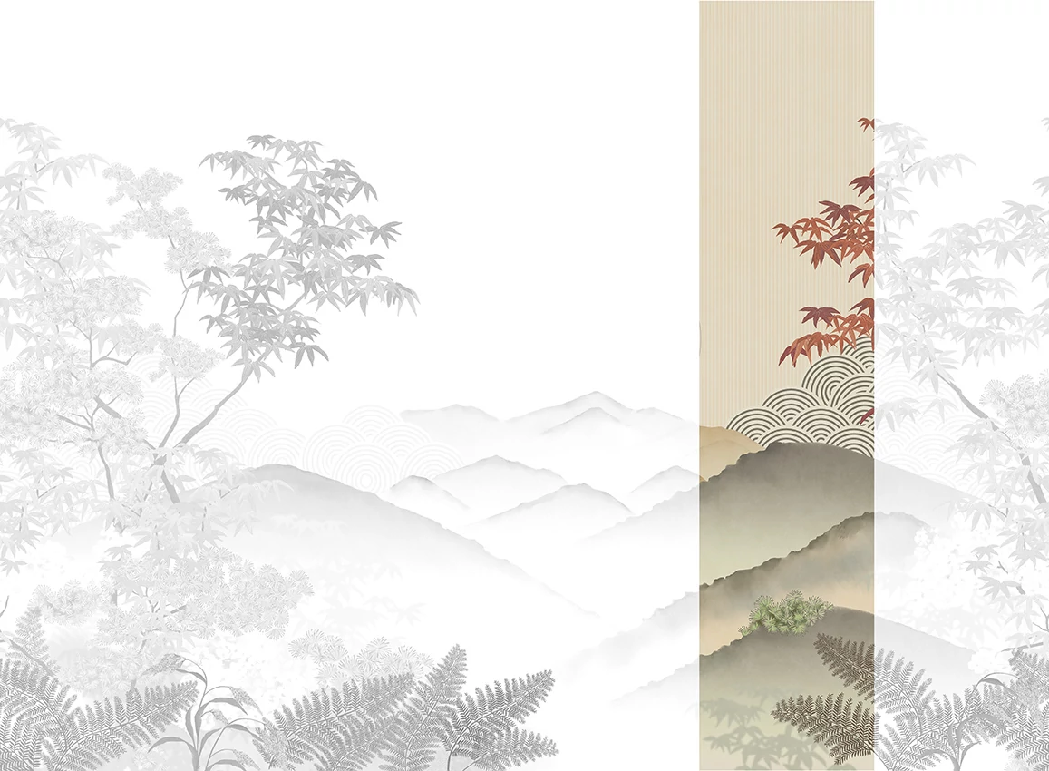 A JV 202 Murals Decor kollekció széles választékát kínálja dekoratív falfestményeknek, amelyekkel egyedi hangulatot és személyre szabott stílust varázsolhatunk a térbe. Egy olyan újdonságokkal teli ajánlat, amely egy lebontási rendszert alkalmaz, ami a kollekció sarokköve a könnyű választás és alkalmazás érdekében. Egy dombok közé ékelt tájkép, ahol a főszereplő a nap, amely éppen lenyugszik, és az utolsó fényeket adja a völgynek. Invermere, amelyet egy kerek, geometrikus motívum gazdagít, amely a dombok mögül emelkedik ki, mélységet és dinamizmust kölcsönözve, egyértelmű utalásként a japán kertekre.