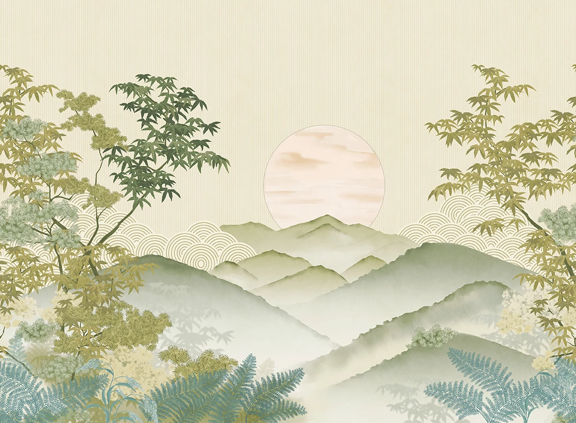 A JV 202 Murals Decor kollekció széles választékát kínálja dekoratív falfestményeknek, amelyekkel egyedi hangulatot és személyre szabott stílust varázsolhatunk a térbe. Egy olyan újdonságokkal teli ajánlat, amely egy lebontási rendszert alkalmaz, ami a kollekció sarokköve a könnyű választás és alkalmazás érdekében. Egy dombok közé ékelt tájkép, ahol a főszereplő a nap, amely éppen lenyugszik, és az utolsó fényeket adja a völgynek. Invermere, amelyet egy kerek, geometrikus motívum gazdagít, amely a dombok mögül emelkedik ki, mélységet és dinamizmust kölcsönözve, egyértelmű utalásként a japán kertekre.
