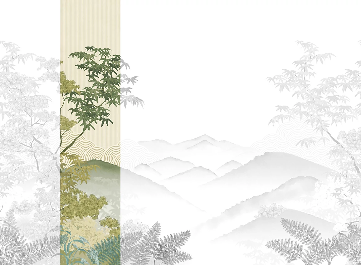 A JV 202 Murals Decor kollekció széles választékát kínálja dekoratív falfestményeknek, amelyekkel egyedi hangulatot és személyre szabott stílust varázsolhatunk a térbe. Egy olyan újdonságokkal teli ajánlat, amely egy lebontási rendszert alkalmaz, ami a kollekció sarokköve a könnyű választás és alkalmazás érdekében. Egy dombok közé ékelt tájkép, ahol a főszereplő a nap, amely éppen lenyugszik, és az utolsó fényeket adja a völgynek. Invermere, amelyet egy kerek, geometrikus motívum gazdagít, amely a dombok mögül emelkedik ki, mélységet és dinamizmust kölcsönözve, egyértelmű utalásként a japán kertekre.