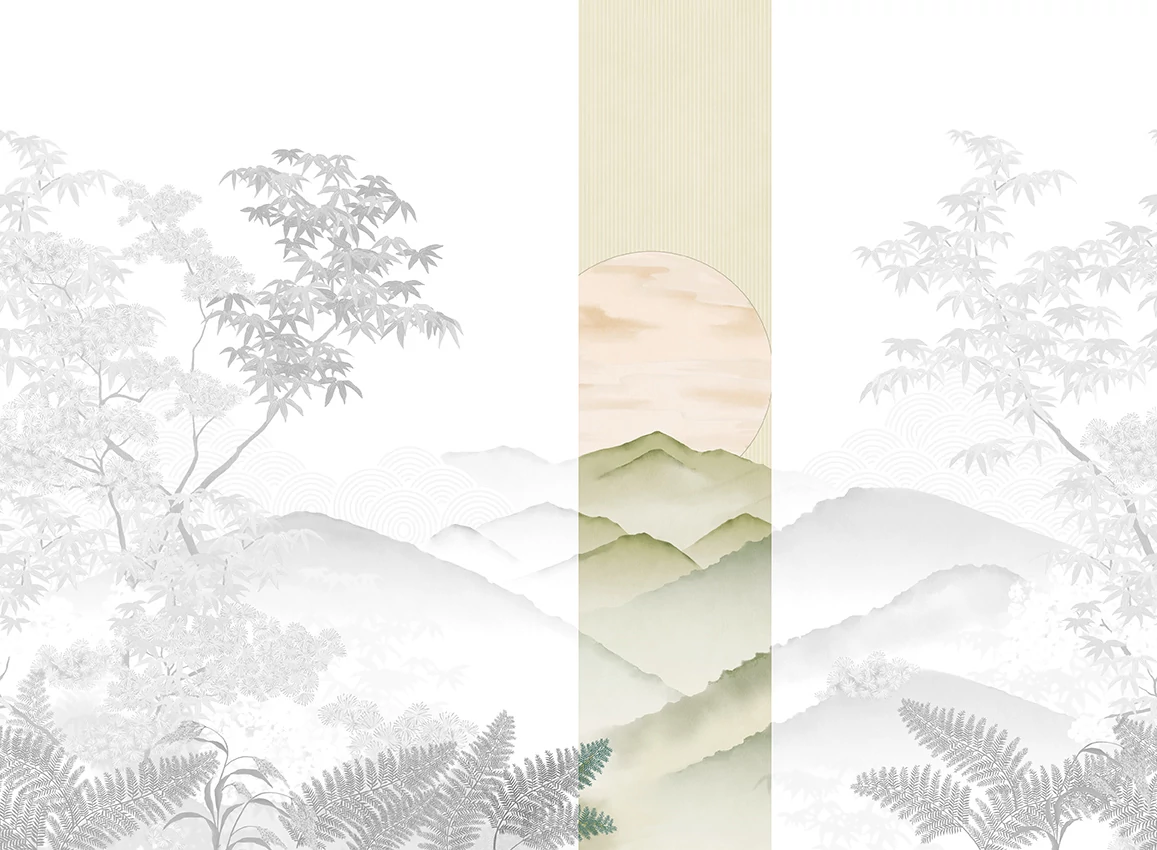A JV 202 Murals Decor kollekció széles választékát kínálja dekoratív falfestményeknek, amelyekkel egyedi hangulatot és személyre szabott stílust varázsolhatunk a térbe. Egy olyan újdonságokkal teli ajánlat, amely egy lebontási rendszert alkalmaz, ami a kollekció sarokköve a könnyű választás és alkalmazás érdekében. Egy dombok közé ékelt tájkép, ahol a főszereplő a nap, amely éppen lenyugszik, és az utolsó fényeket adja a völgynek. Invermere, amelyet egy kerek, geometrikus motívum gazdagít, amely a dombok mögül emelkedik ki, mélységet és dinamizmust kölcsönözve, egyértelmű utalásként a japán kertekre.