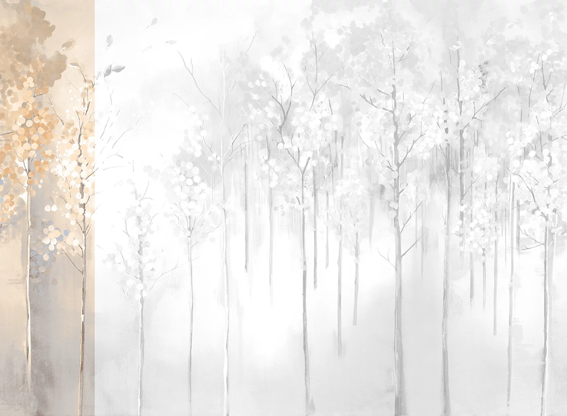 A JV 202 Murals Decor kollekció széles választékát kínálja dekoratív falfestményeknek, amelyekkel egyedi hangulatot és személyre szabott stílust varázsolhat otthonába. Az új témákban gazdag kínálat egy lebontási rendszert alkalmaz, amely a kollekció alapköve, megkönnyítve a választást és a felhelyezést. Elvarázsolt erdő, ködbe burkolózva, nyírfákat ábrázolva őszi lombkoronával. Juharfa minták különböző színvariációkban, amelyek melegséget sugároznak a helyiségekbe, és az ezüst alapon világító változatban megvilágítják a falat.