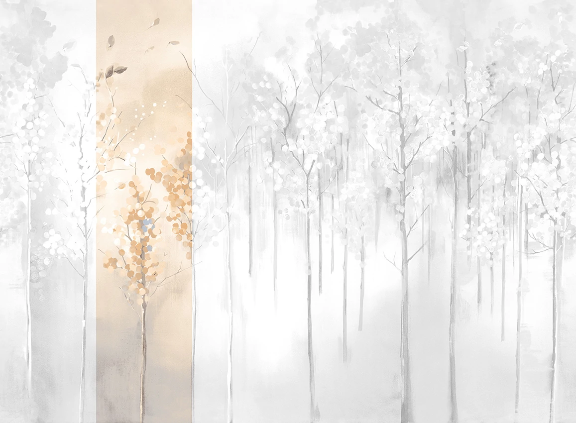 A JV 202 Murals Decor kollekció széles választékát kínálja dekoratív falfestményeknek, amelyekkel egyedi hangulatot és személyre szabott stílust varázsolhat otthonába. Az új témákban gazdag kínálat egy lebontási rendszert alkalmaz, amely a kollekció alapköve, megkönnyítve a választást és a felhelyezést. Elvarázsolt erdő, ködbe burkolózva, nyírfákat ábrázolva őszi lombkoronával. Juharfa minták különböző színvariációkban, amelyek melegséget sugároznak a helyiségekbe, és az ezüst alapon világító változatban megvilágítják a falat.