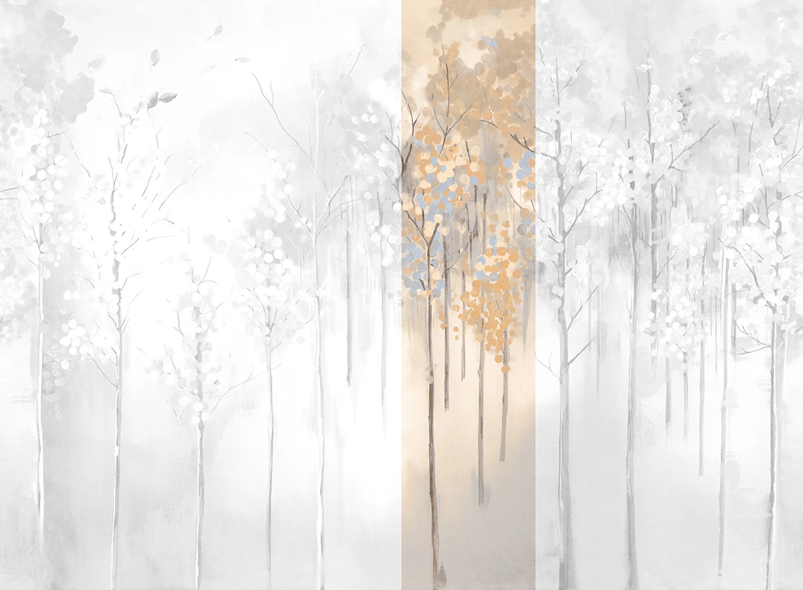 A JV 202 Murals Decor kollekció széles választékát kínálja dekoratív falfestményeknek, amelyekkel egyedi hangulatot és személyre szabott stílust varázsolhat otthonába. Az új témákban gazdag kínálat egy lebontási rendszert alkalmaz, amely a kollekció alapköve, megkönnyítve a választást és a felhelyezést. Elvarázsolt erdő, ködbe burkolózva, nyírfákat ábrázolva őszi lombkoronával. Juharfa minták különböző színvariációkban, amelyek melegséget sugároznak a helyiségekbe, és az ezüst alapon világító változatban megvilágítják a falat.