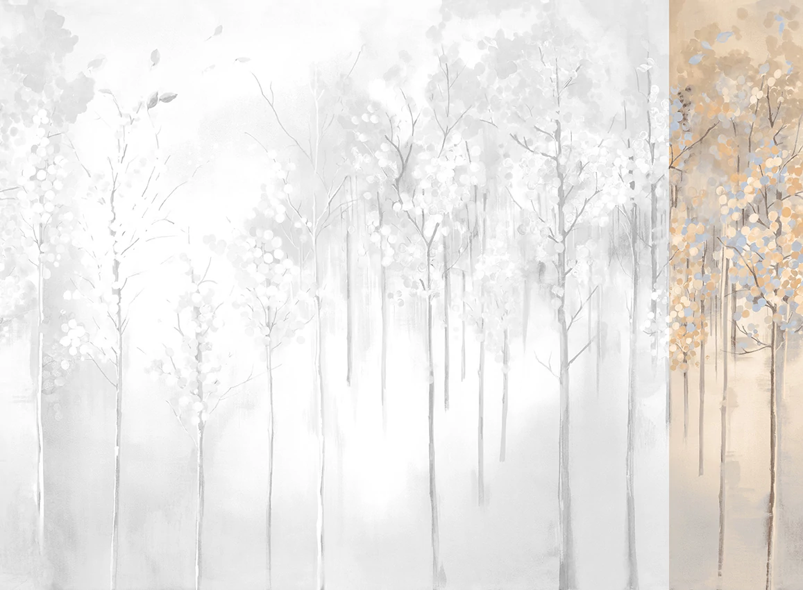 A JV 202 Murals Decor kollekció széles választékát kínálja dekoratív falfestményeknek, amelyekkel egyedi hangulatot és személyre szabott stílust varázsolhat otthonába. Az új témákban gazdag kínálat egy lebontási rendszert alkalmaz, amely a kollekció alapköve, megkönnyítve a választást és a felhelyezést. Elvarázsolt erdő, ködbe burkolózva, nyírfákat ábrázolva őszi lombkoronával. Juharfa minták különböző színvariációkban, amelyek melegséget sugároznak a helyiségekbe, és az ezüst alapon világító változatban megvilágítják a falat.