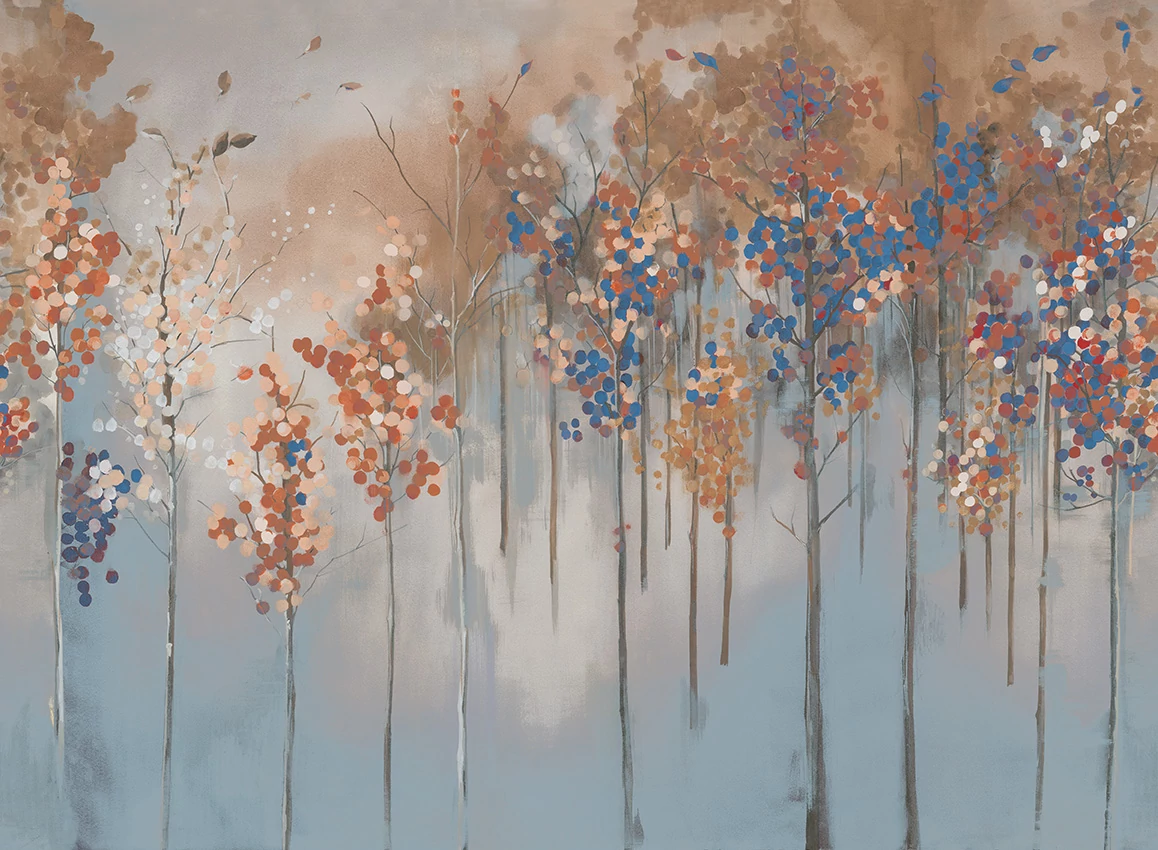 A JV 202 Murals Decor kollekció széles választékát kínálja dekoratív falfestményeknek, amelyekkel egyedi hangulatot és személyre szabott stílust varázsolhat otthonába. Az új témákban gazdag kínálat egy lebontási rendszert alkalmaz, amely a kollekció alapköve, megkönnyítve a választást és a felhelyezést. Elvarázsolt erdő, ködbe burkolózva, nyírfákat ábrázolva őszi lombkoronával. Juharfa minták különböző színvariációkban, amelyek melegséget sugároznak a helyiségekbe, és az ezüst alapon világító változatban megvilágítják a falat.