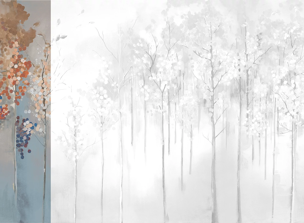 A JV 202 Murals Decor kollekció széles választékát kínálja dekoratív falfestményeknek, amelyekkel egyedi hangulatot és személyre szabott stílust varázsolhat otthonába. Az új témákban gazdag kínálat egy lebontási rendszert alkalmaz, amely a kollekció alapköve, megkönnyítve a választást és a felhelyezést. Elvarázsolt erdő, ködbe burkolózva, nyírfákat ábrázolva őszi lombkoronával. Juharfa minták különböző színvariációkban, amelyek melegséget sugároznak a helyiségekbe, és az ezüst alapon világító változatban megvilágítják a falat.